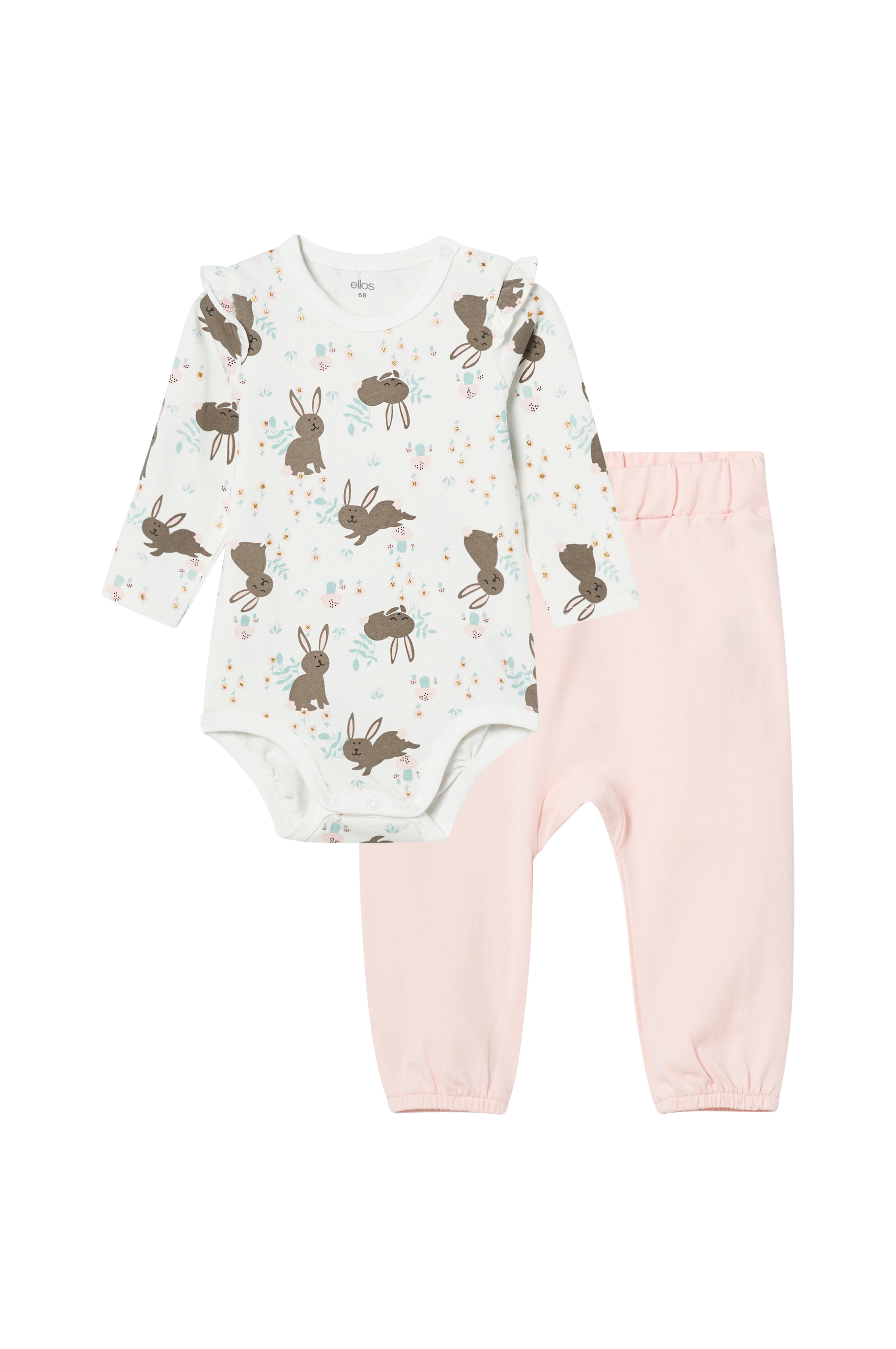 • Tvådelat set i bomullstrikå • Långärmad body med tryckknappar på axeln och i grenen • Byxor med dragsko i midjan och resår i bensluten • Produkten innehåller ekologisk bomull som är odlad utan kemiska bekämpningsmedel, konstgödsel och genmodifierade grödor (GMO). Det innebär en mer hälsosam arbetsmiljö för bönder och bättre jordmån.