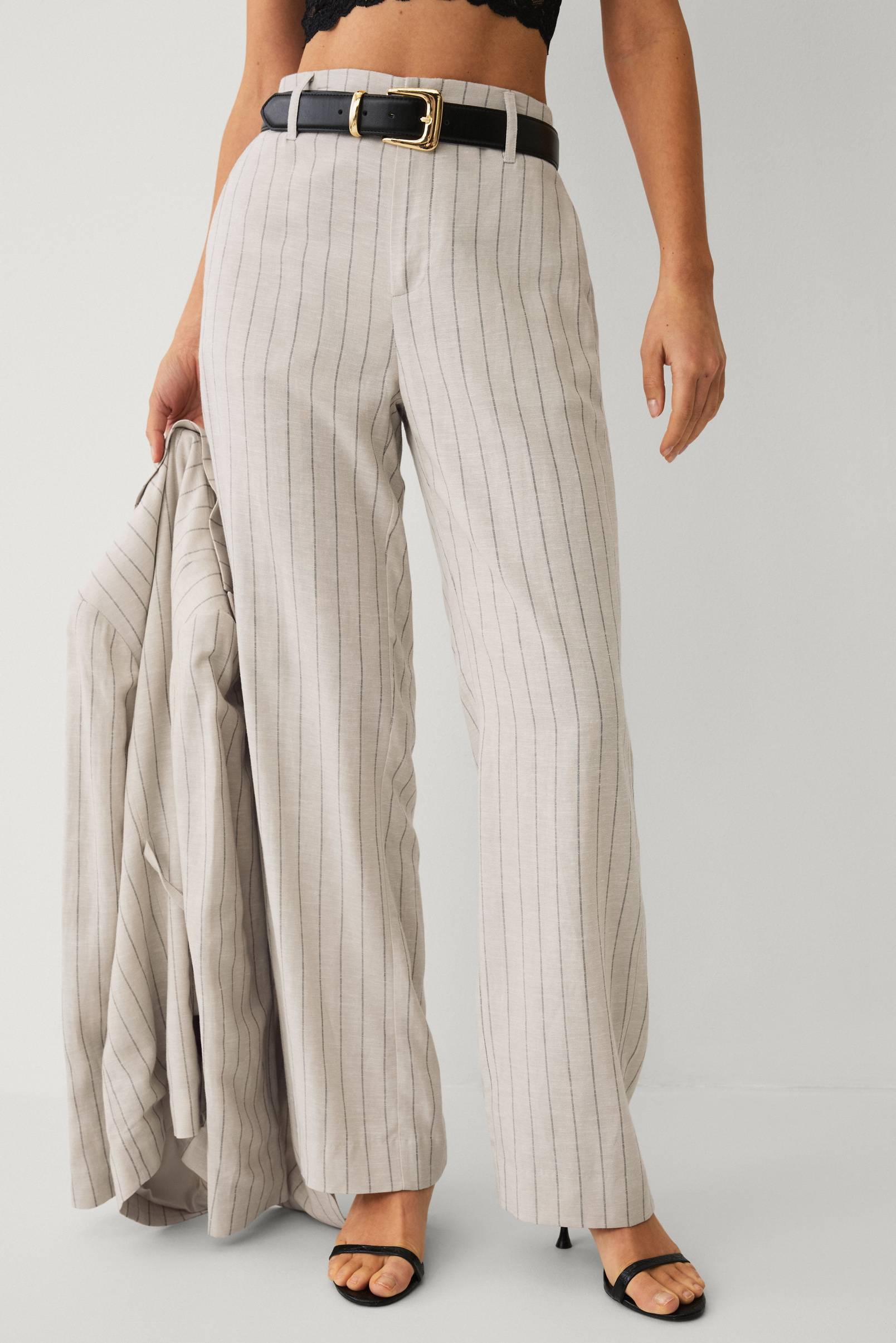 • Smalrandiga byxor i linnemix