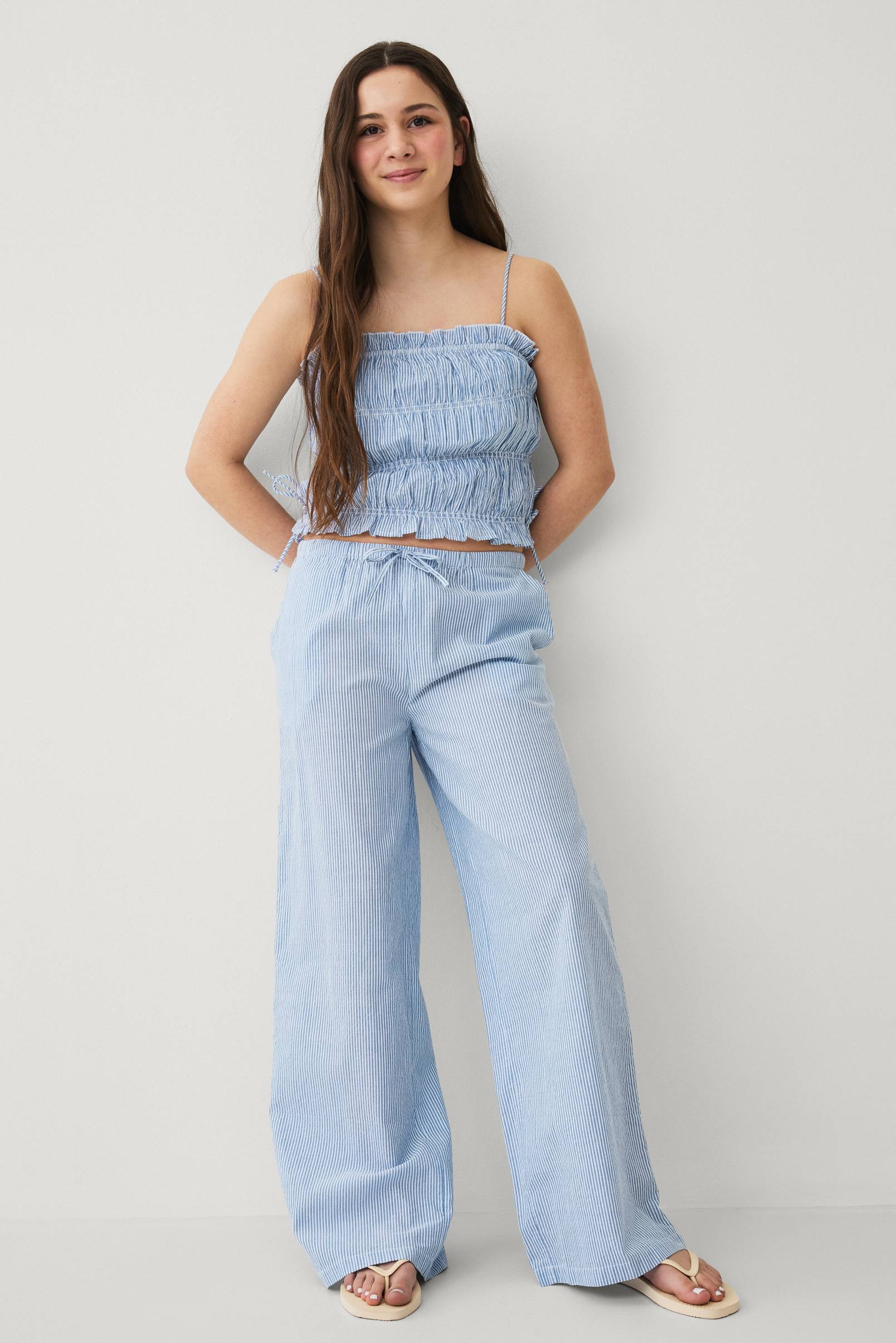 • Vida byxor i seersucker• Elastisk midja med dragsko
