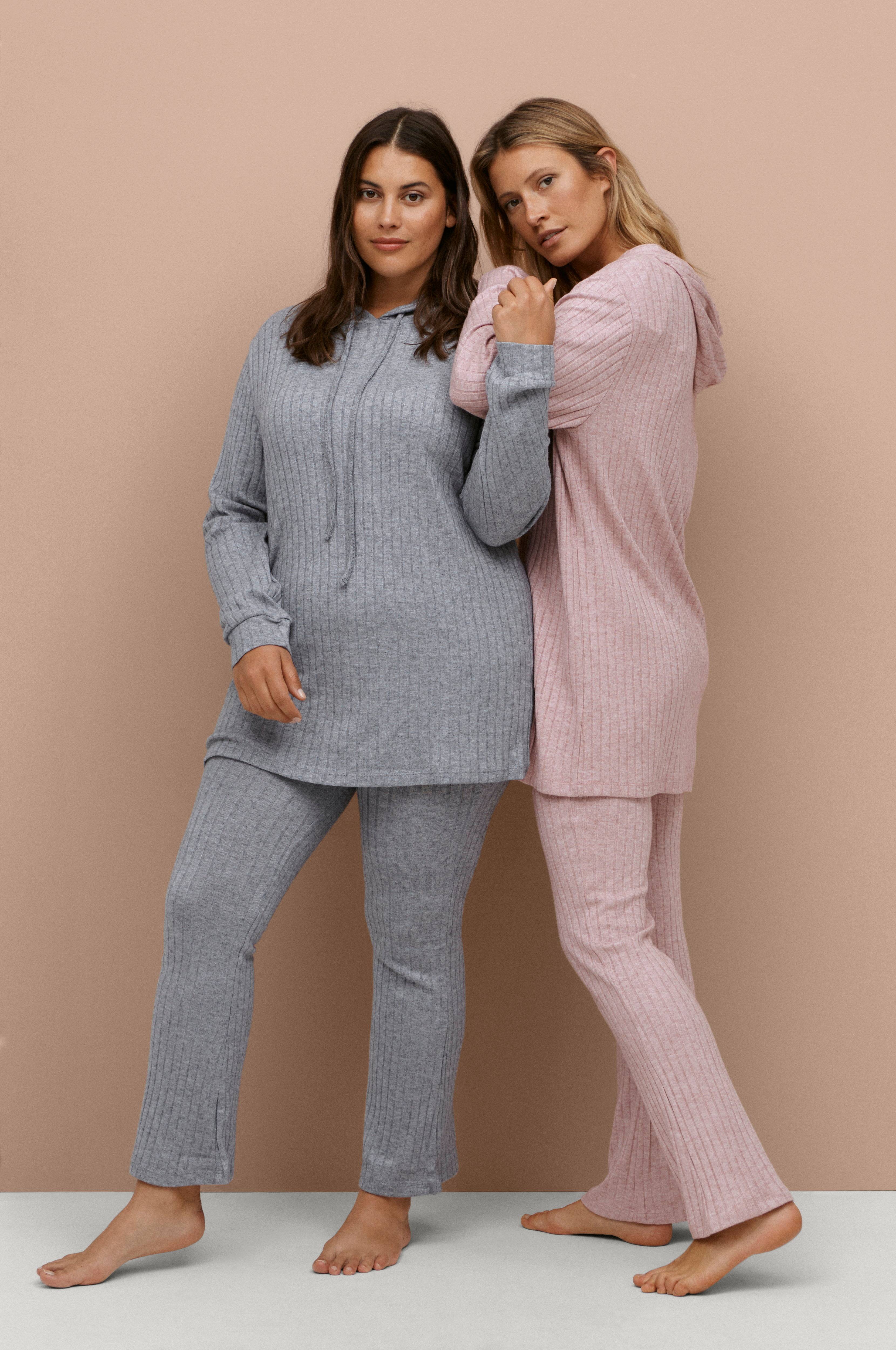 Mjuka, ribbade byxor med utställda benslut. Smal passform upptill och resår i midjan.
