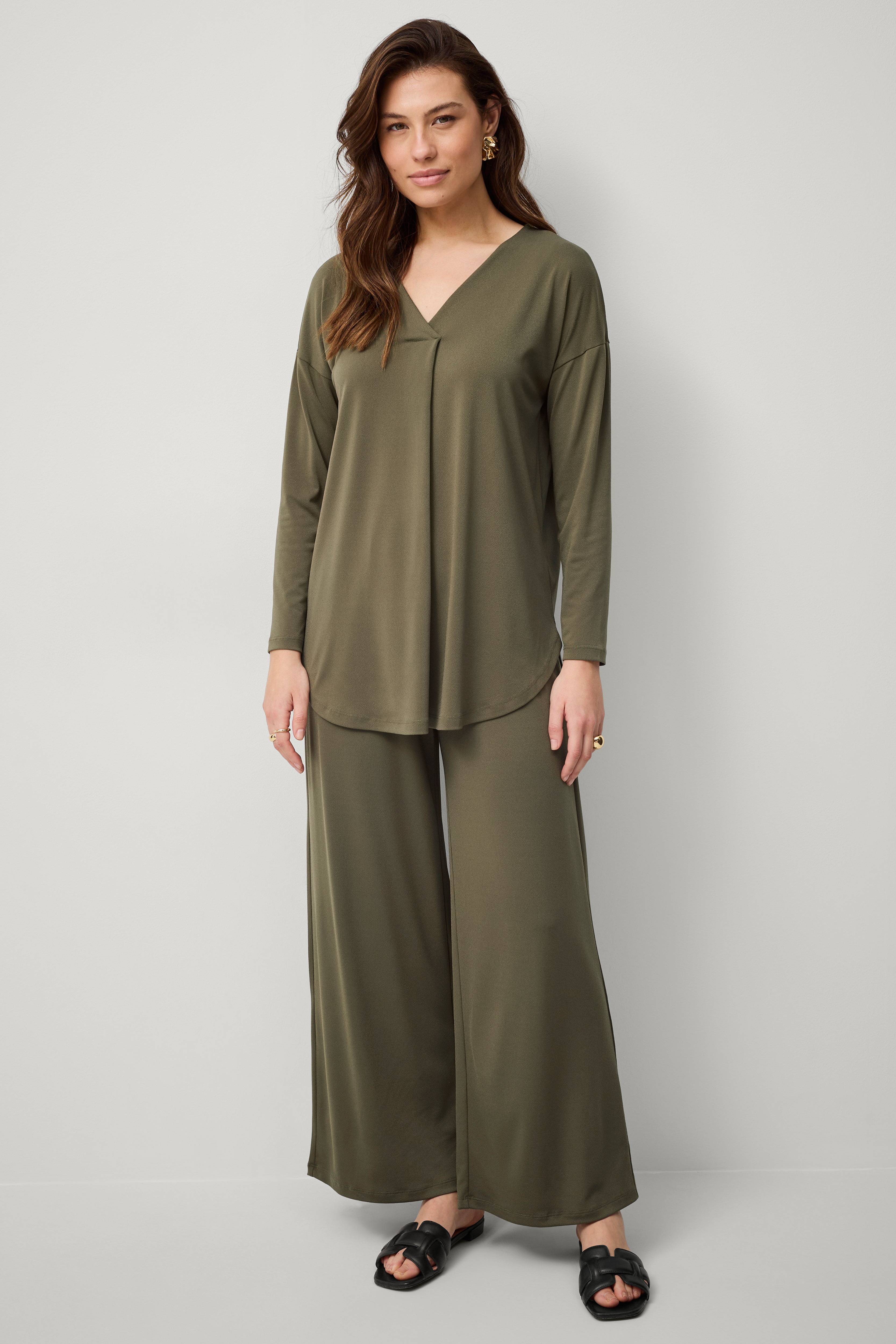 • Vida byxor i trikå• Elastisk midja• Fickor i sidorna• Beninnerlängd: 73 cm i storlek 34/36