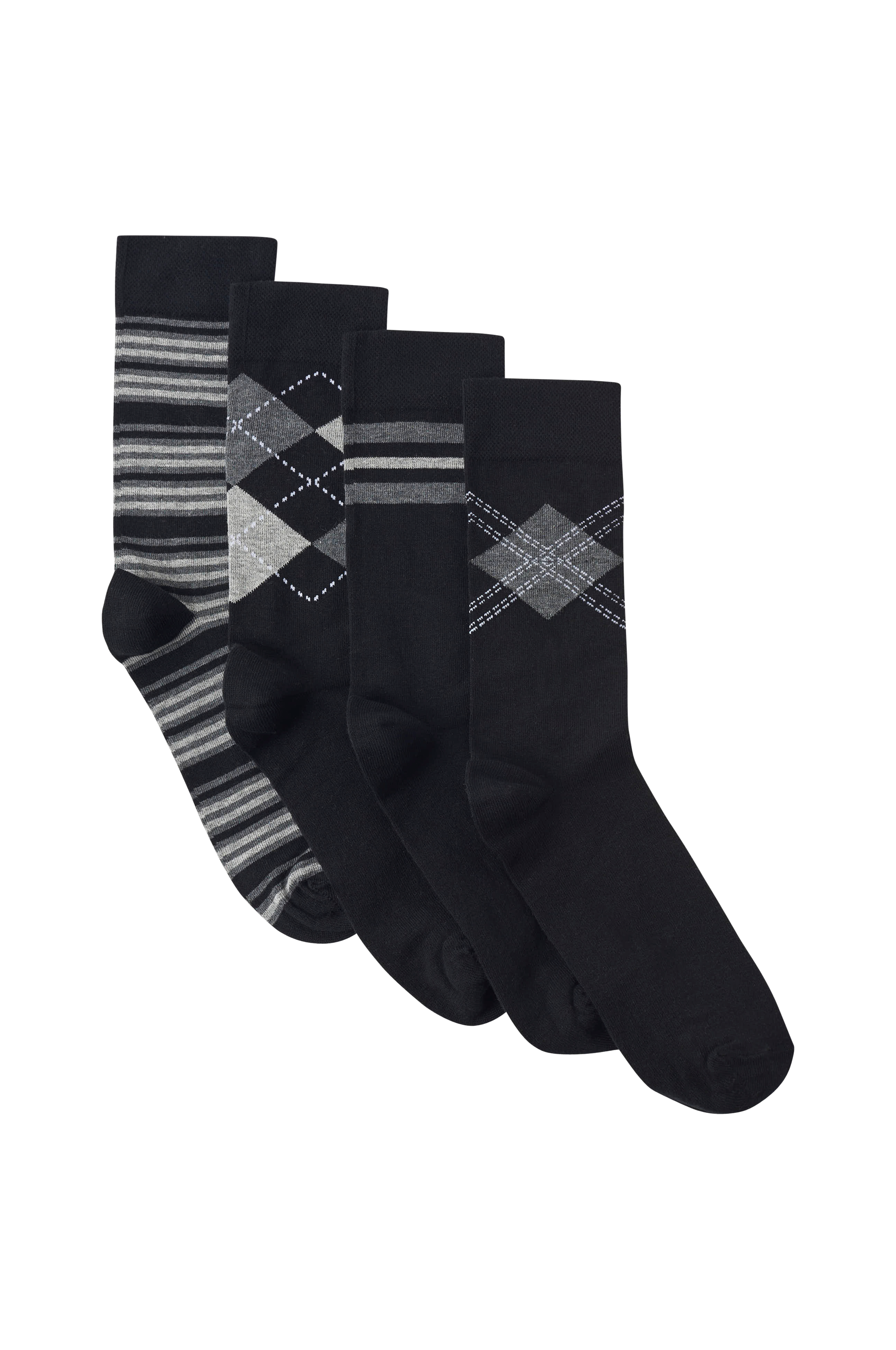 • Strumpor med olika mönster• Elastisk kant på skaftet• Fyra par