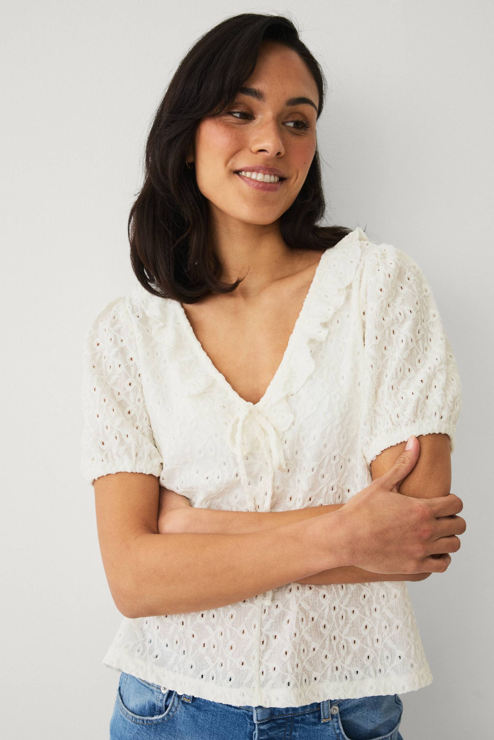 • Hålmönstrad topp med dekorativ volang