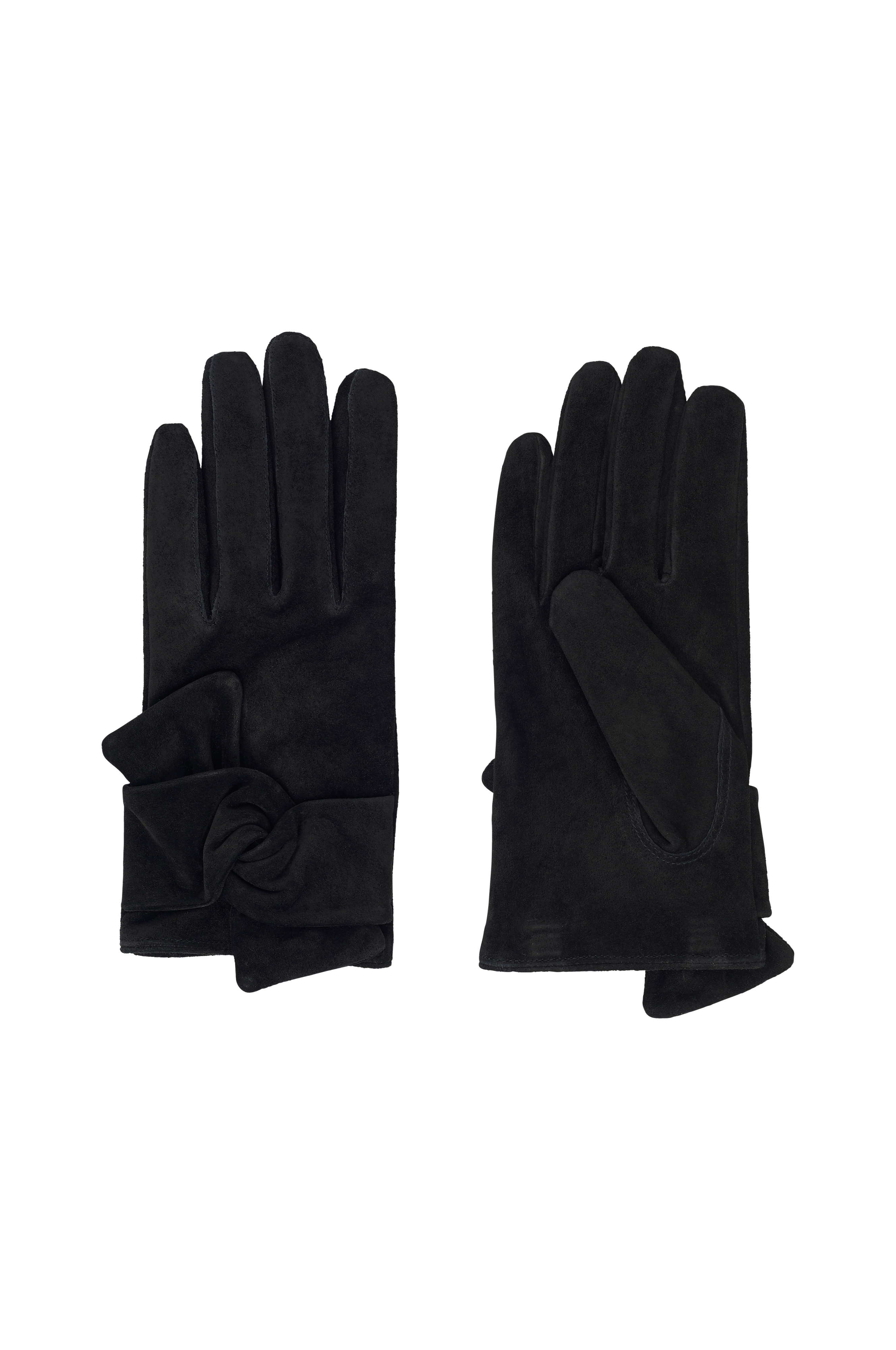 Skinnhandskar i mjuk och följsam nubuck (slipat skinn) med textilfoder. Dekorativ rosett på handryggen.