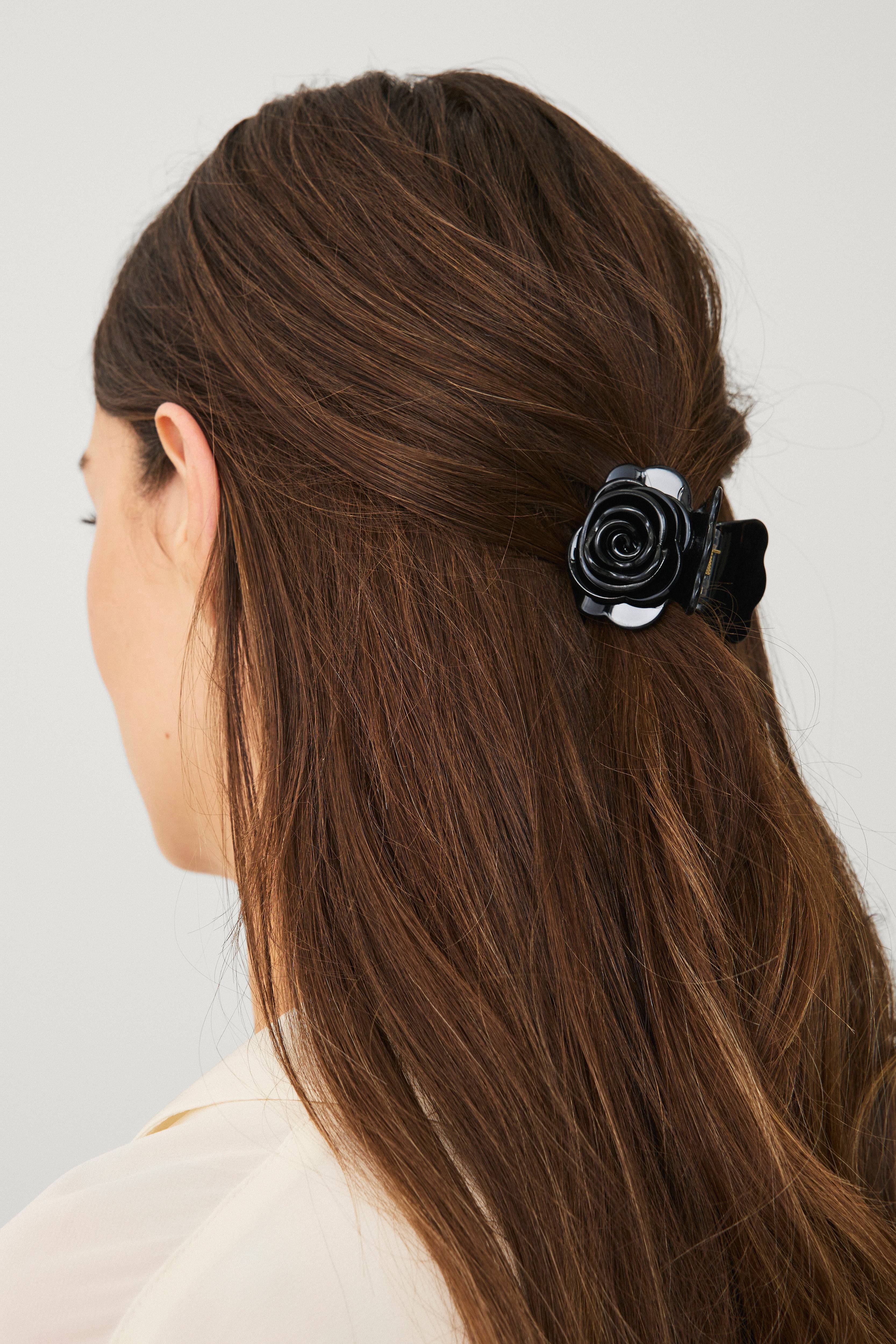 • Hårklämma av akryl med rosmotiv• Stl 5x5 cm