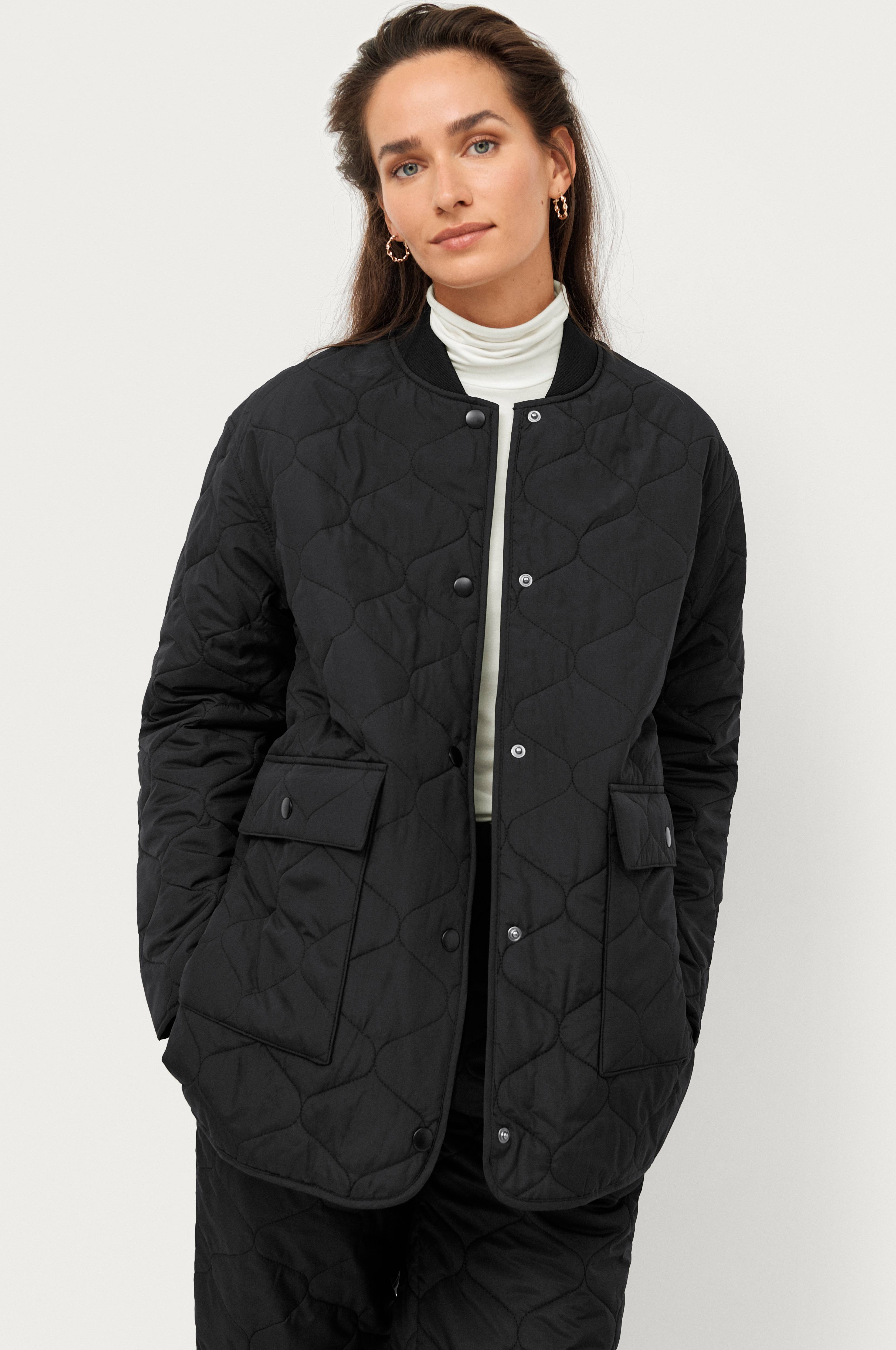 • Quiltad jacka med tunn vaddering • Oversize-passform • Tryckknappar fram • Stora, fleecefodrade fickor • Ribbad mudd i halsen • Längd: 75 cm i storlek 34/36 • Produkten innehåller återvunnet material som har tagits tillvara för att minska mängden avfall, samtidigt som nya resurser inte har förbrukats. • Produkten är impregnerad med Rudolf Bionic Finish Eco, en vattenavvisande behandling som är fri från tillsatta perfluorerade ämnen (PFC). Du kan behöva återaktivera impregneringen om vattnet på ytan slutar pärla sig. Detta gör du genom att tillsätta värme på låg temperatur genom t.ex. strykning eller torktumling. Vid behov kan även impregneringspreparat behövas.