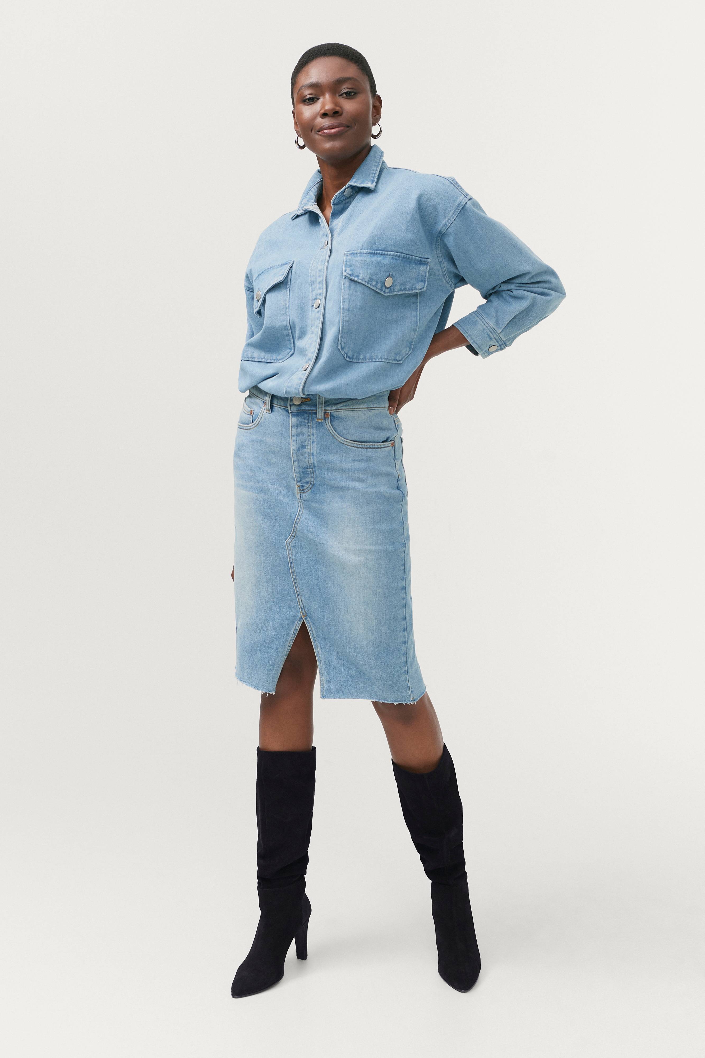 Snygg och skön jeanskjol! Perfekt i storleken. Rekommenderas verkligen.