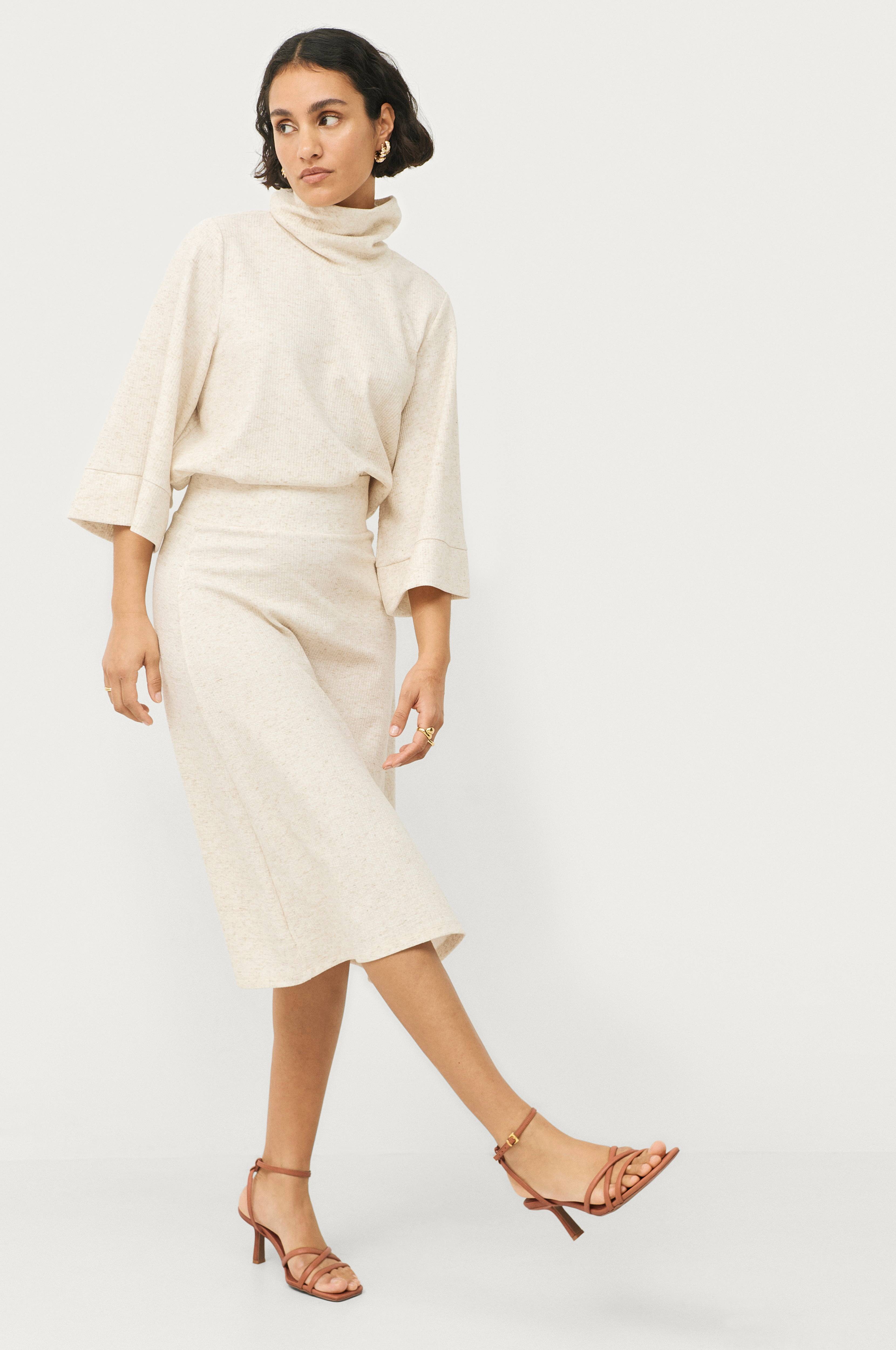 • A-linjeform• Elastisk midja• Ribbad struktur• Längd: 74 cm i storlek 34/36