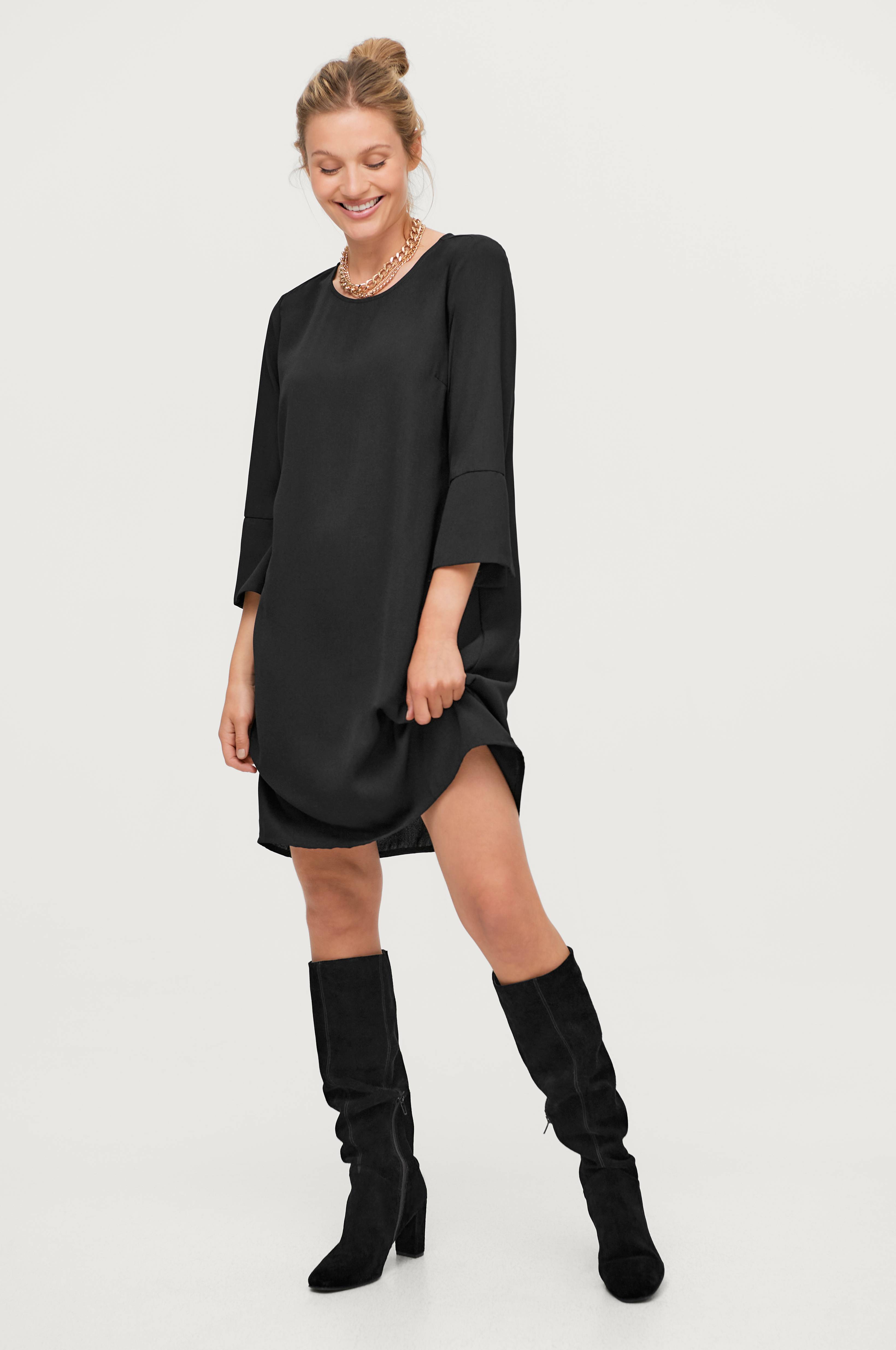 Denna klänning är väldigt användbar nu till vita sneakers och höst/vinter till svarta täta strumpbyxor och svarta stövlar jättefint klassiskt. Tog en storlek större bara för att få e…