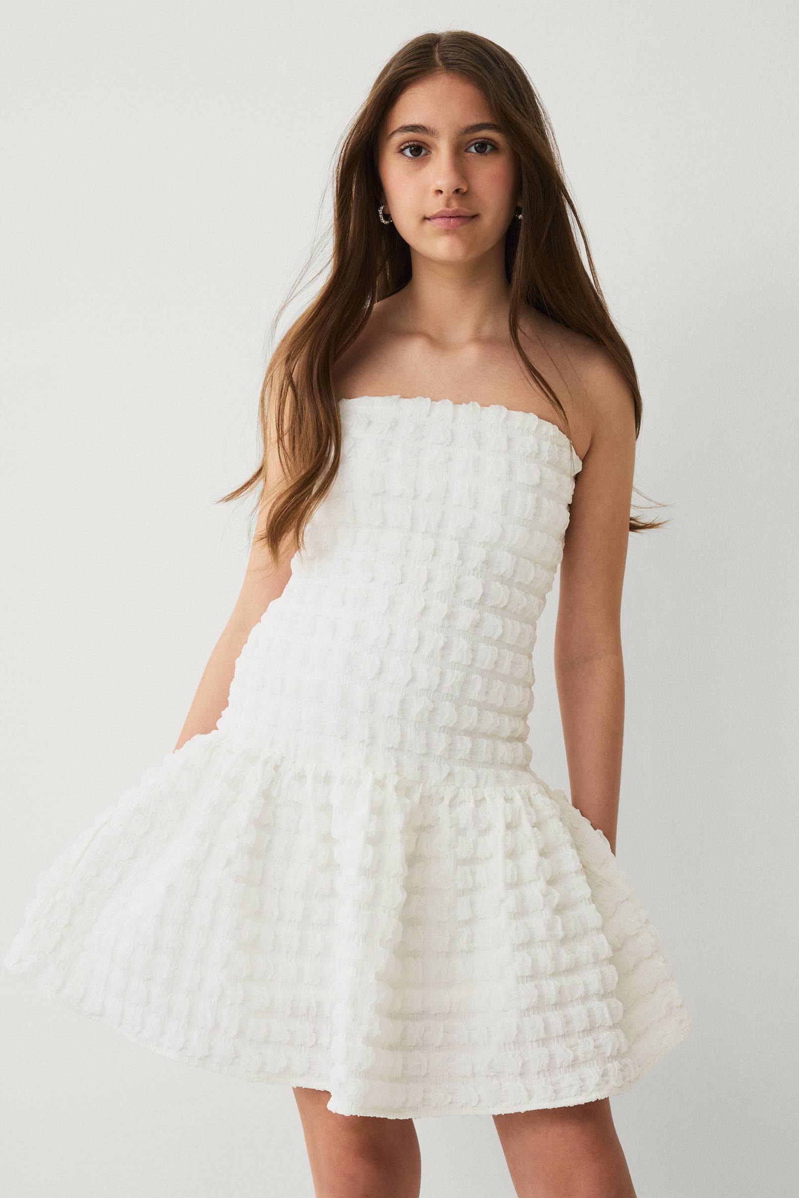 • Ärmlös, fodrad klänning med bubblig struktur
