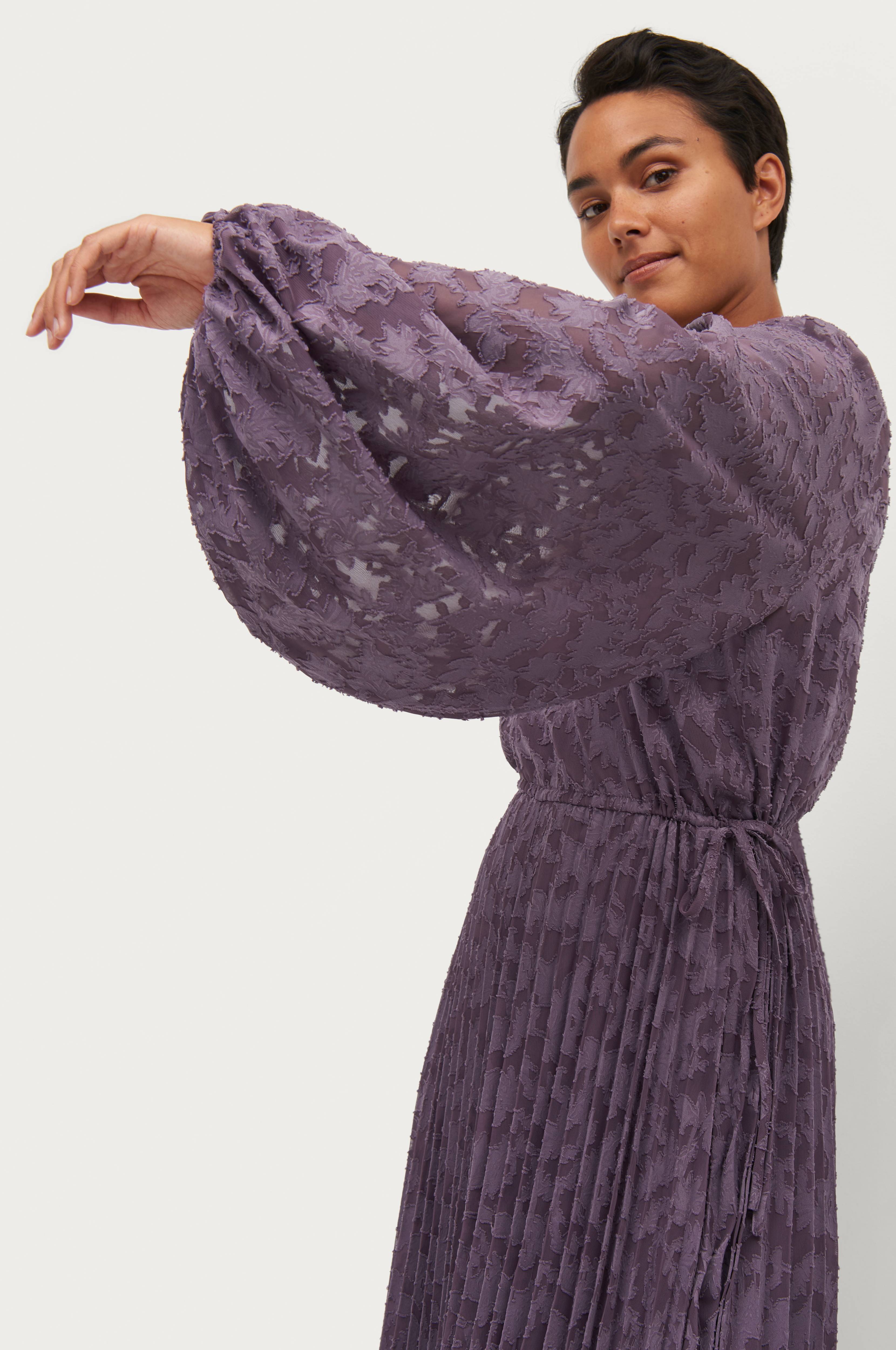• Gjord av chiffong med vävt mönster