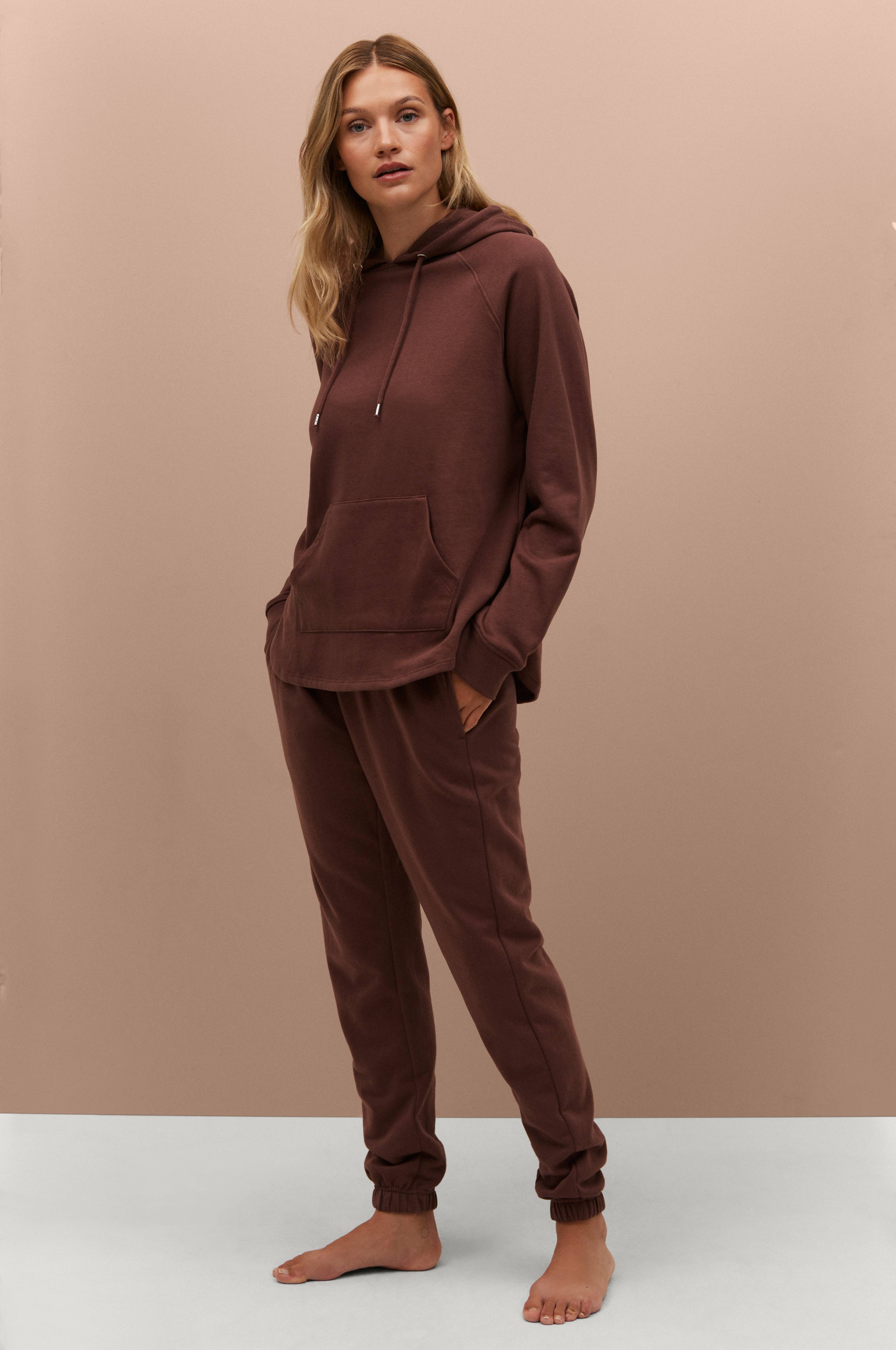 Mjuka byxor med borstad insida. Elastisk linning med dragsko. Fickor i sidorna och resår i bensluten.