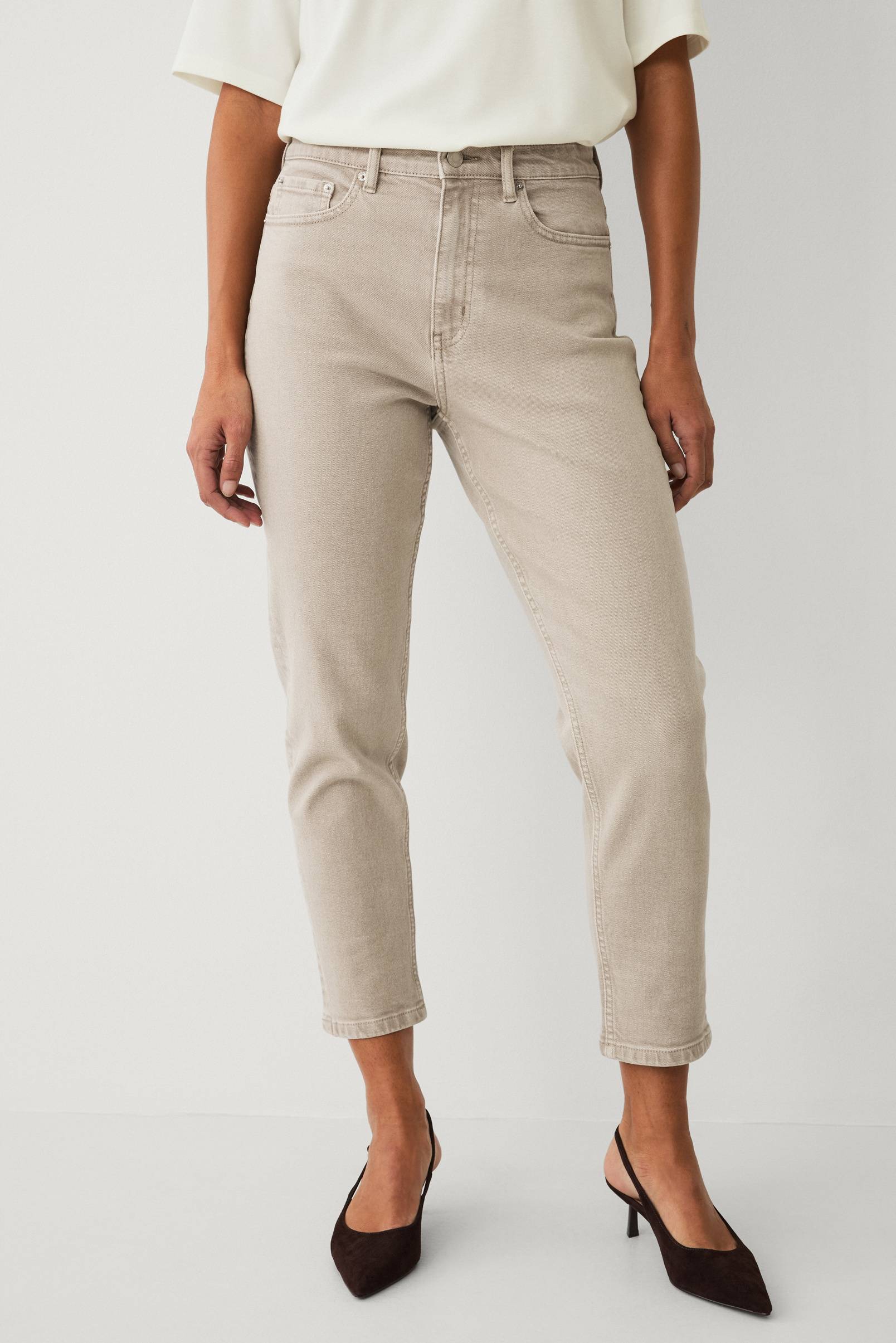 • Avslappnad passform• Hög midja med avsmalnande ben och något vidare lår• Avsmalnande benslut• Femficksmodell• Stretchdenim• Kan upplevas som stora i storleken