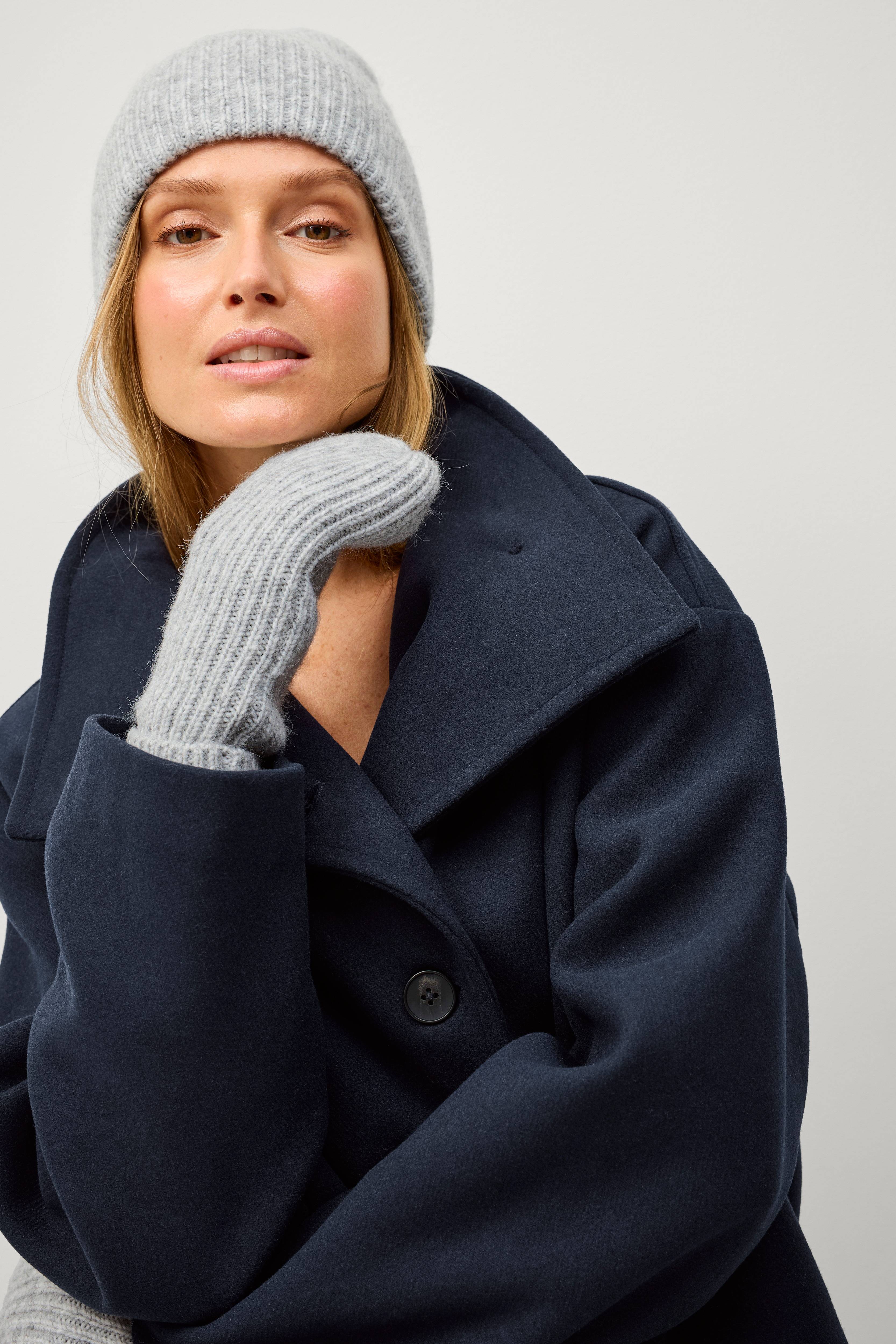 • Ribbstickat set med mössa och tumvantar• Uppvikt nederkant• Tumvantar med fleecefoder