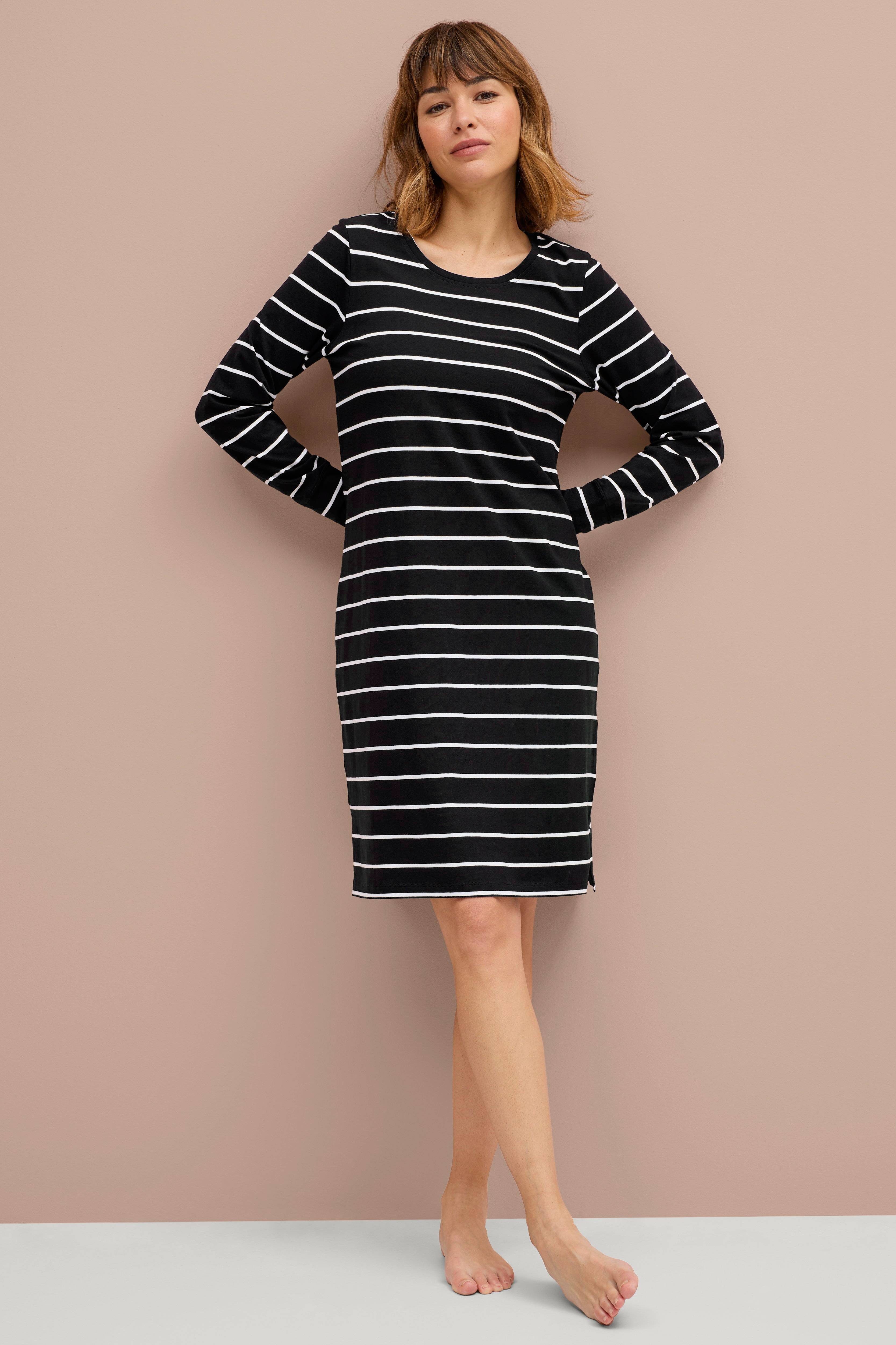 • Nattlinne i bomullstrikå• Långa ärmar• Sprund nedtill i sidorna