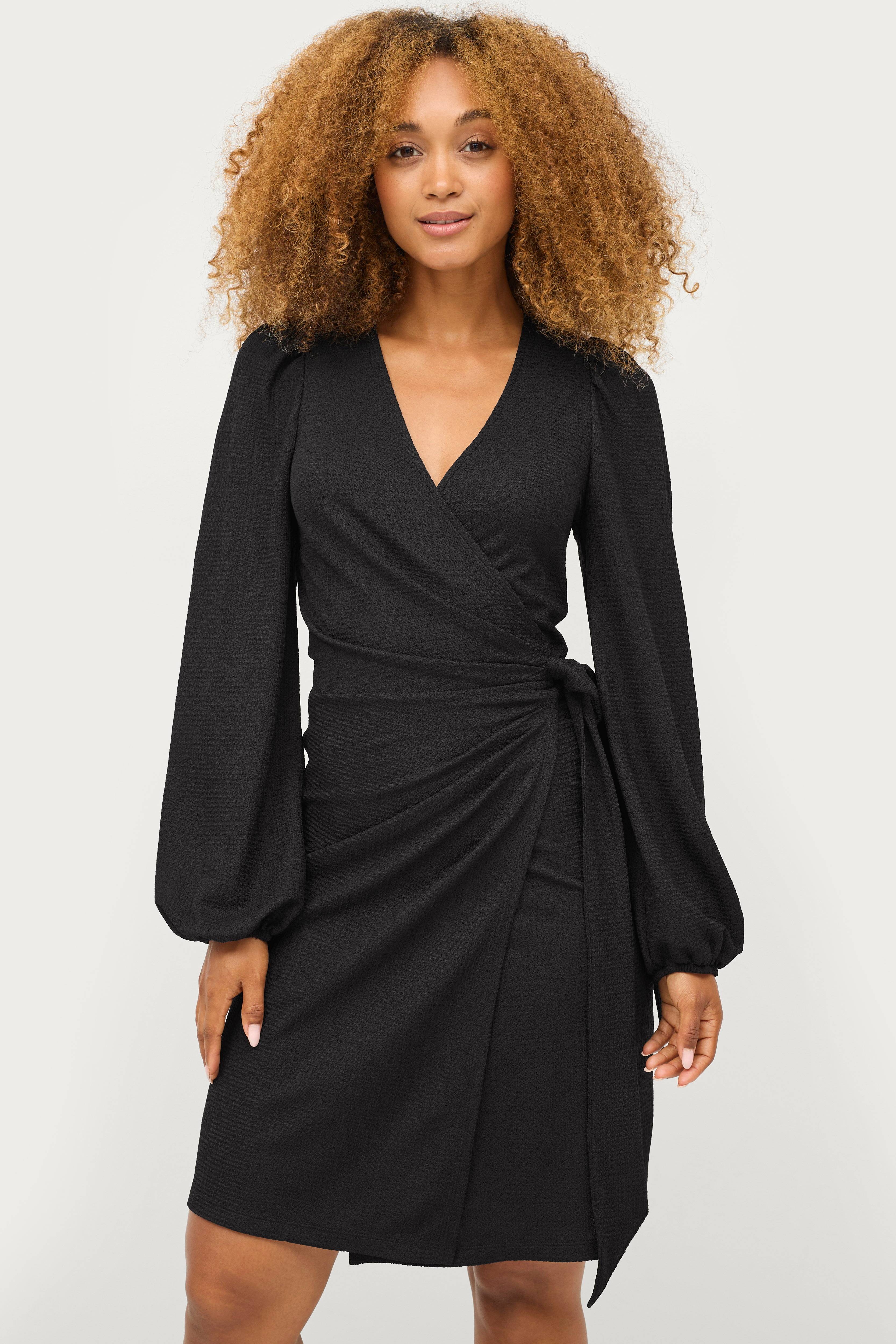 • Omlottdesign med knytband i sidan• Ballongärmar med elastiska ärmslut• Material med struktur och lätt stretch• Längd: 95 cm i storlek 34/36