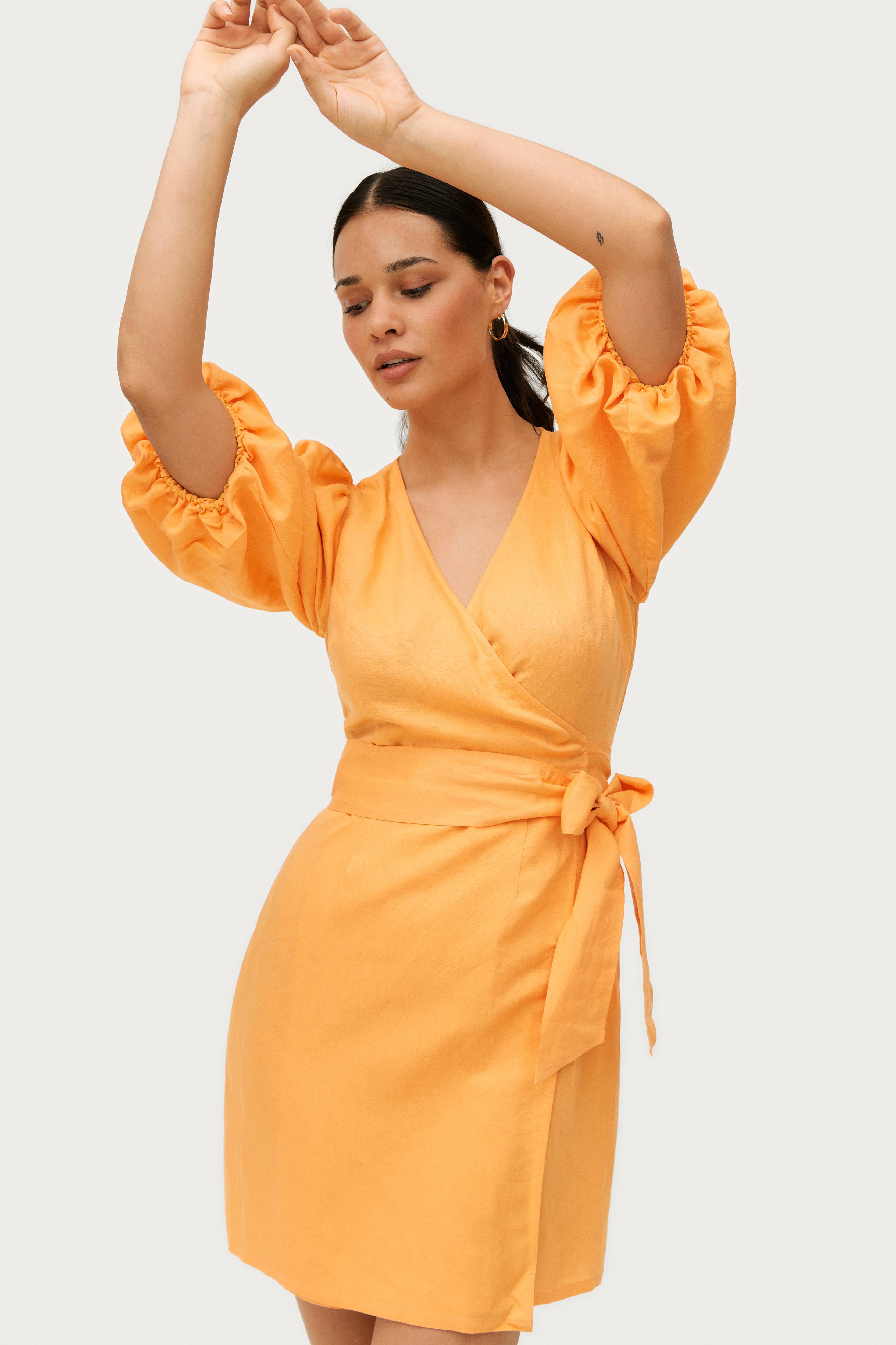 Jag tycker att klänningen var riktigt fin på och normal i storlek. Tyvärr är det (som många andra linneplagg) transparent och du ser underkläderna rakt igenom. Om detta ska bäras mås…
