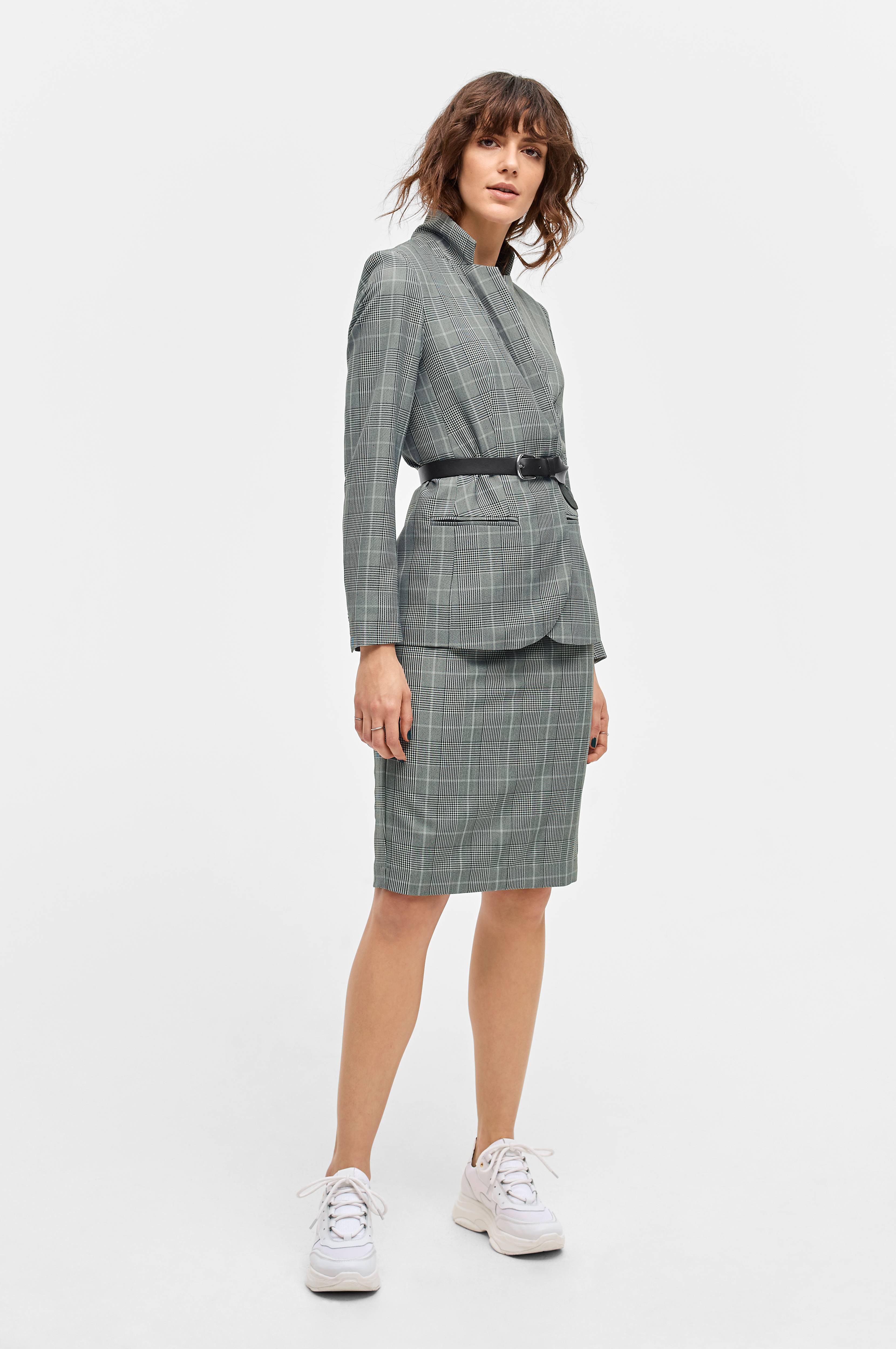 Pennkjol Millie i stilig modell med hög midja som har påsydd linning med dold dragkedja bak. Sprund bak i nederkant. Vävd kvalitet med vävt foder. Längd ca 56 cm i stl 36.