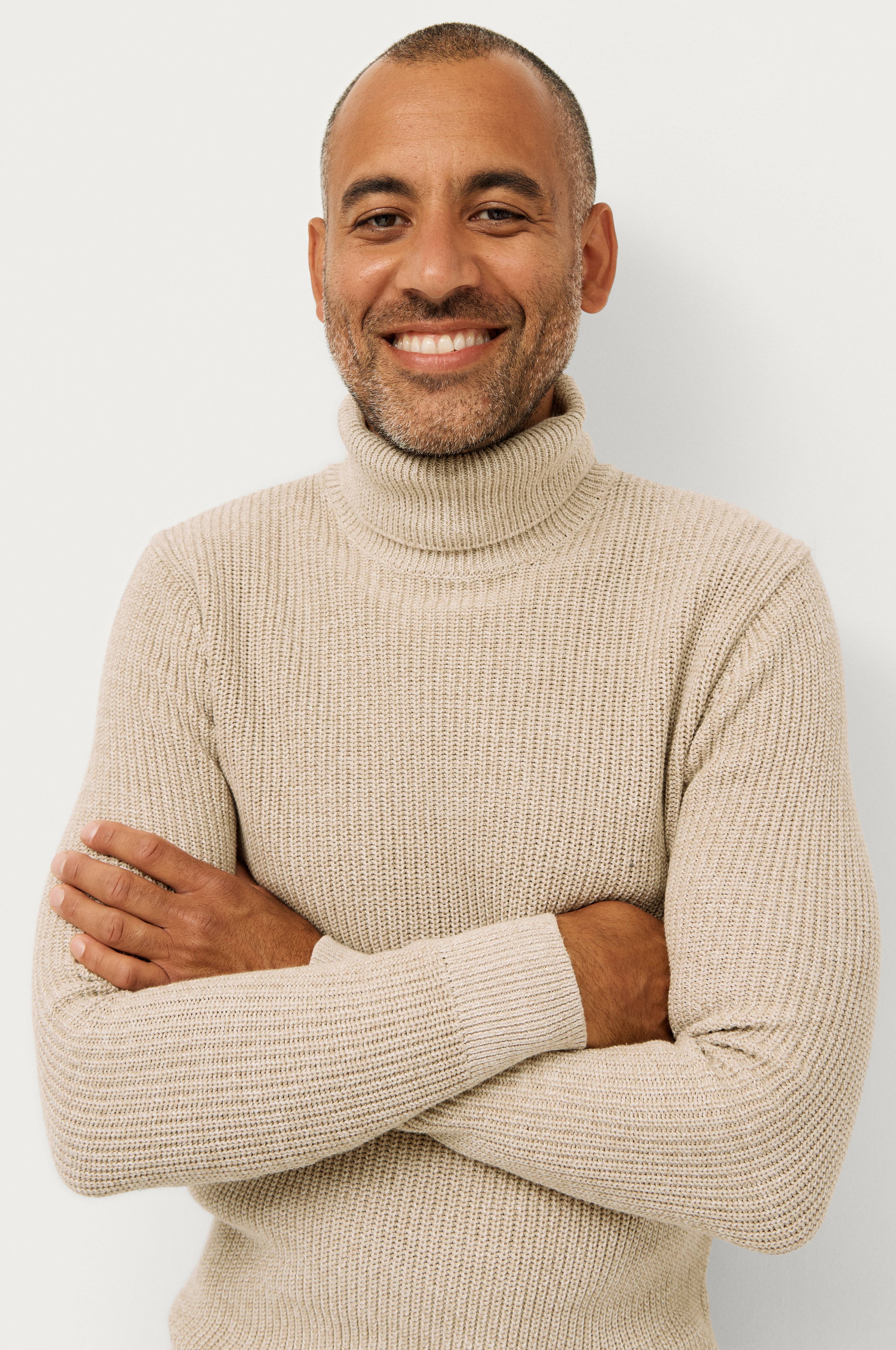 • Stickad tröja med polokrage