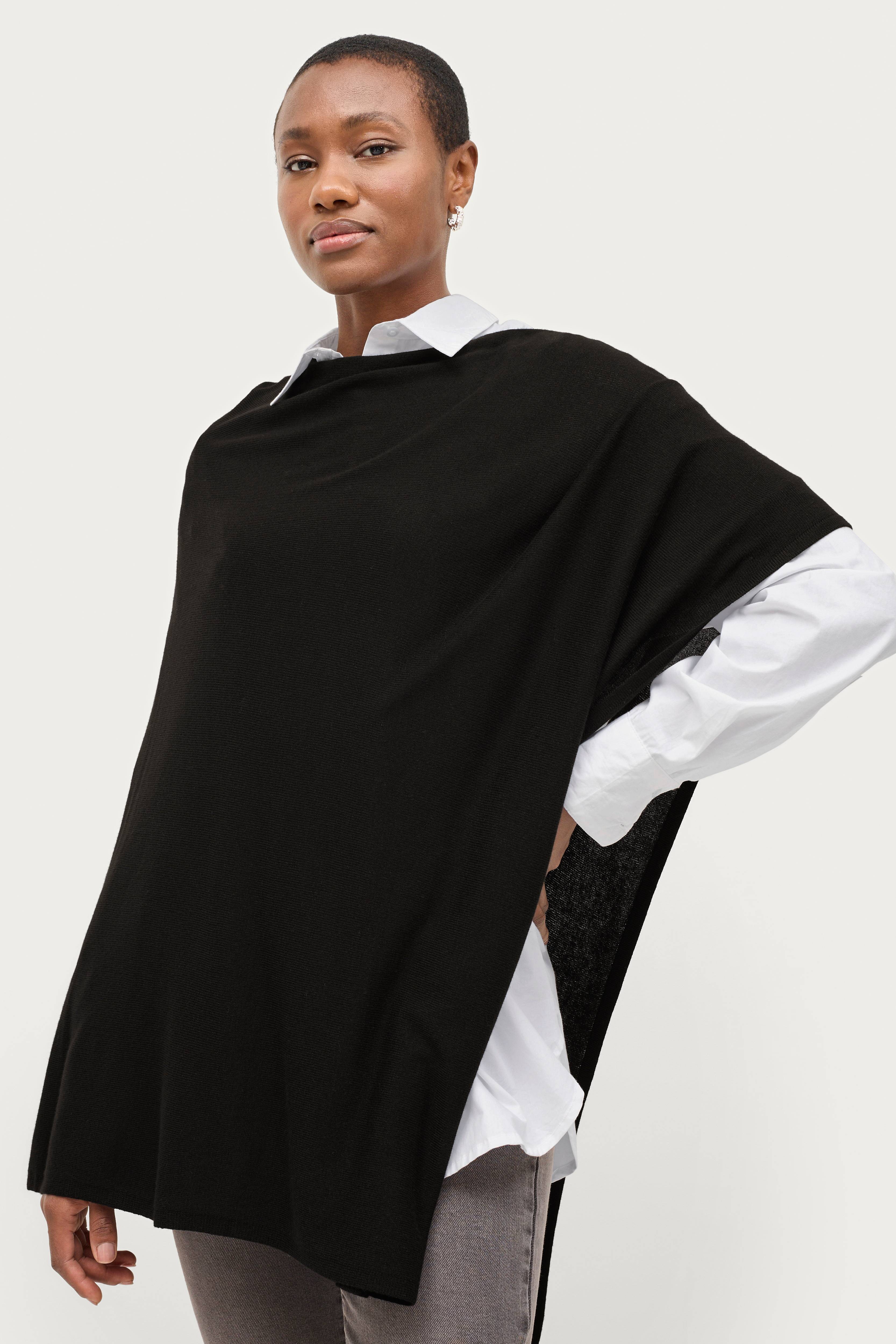 • Finstickad poncho• Asymmetrisk nederkant• En öppen sida