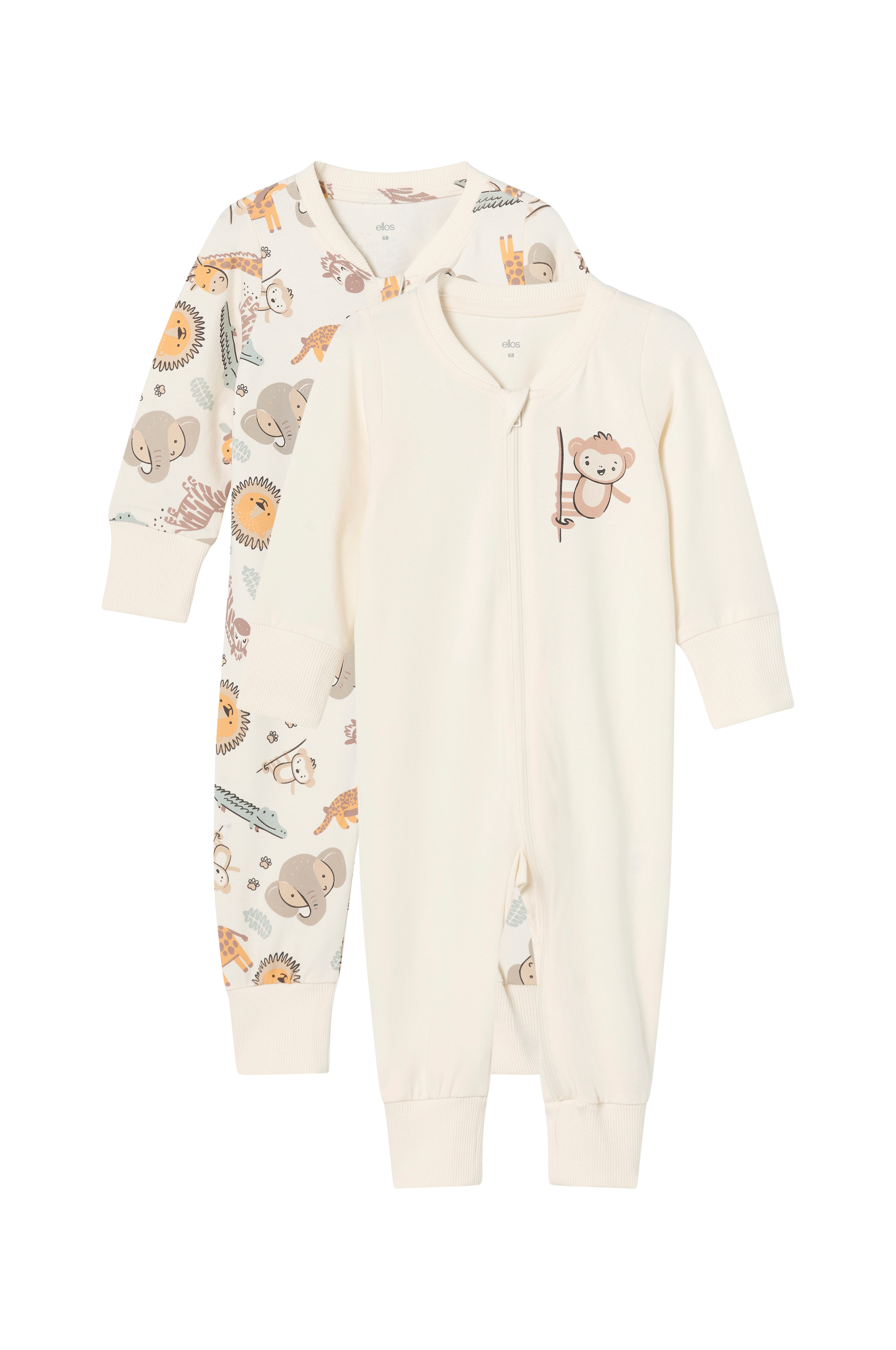 • Två pyjamasoveraller i mjuk bomullstrikå