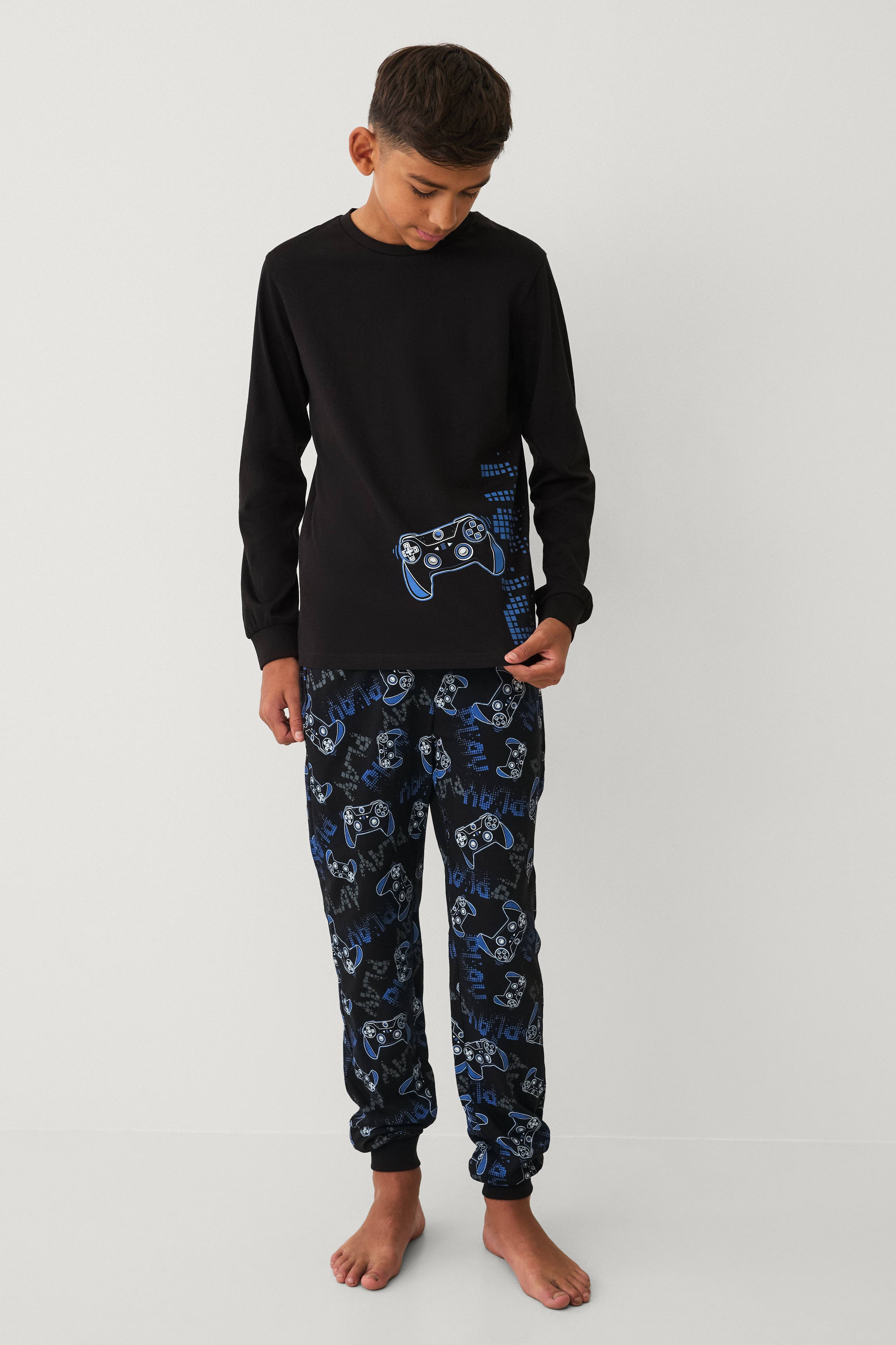 • 2-delat set i bomull• Långärmad t-shirt med rund, ribbad halsringning• Stort tryck fram• Ribbmuddar i ärmsluten• Byxor med resår i midjan och ribbmuddar i bensluten• Tryckt mönster runt hela