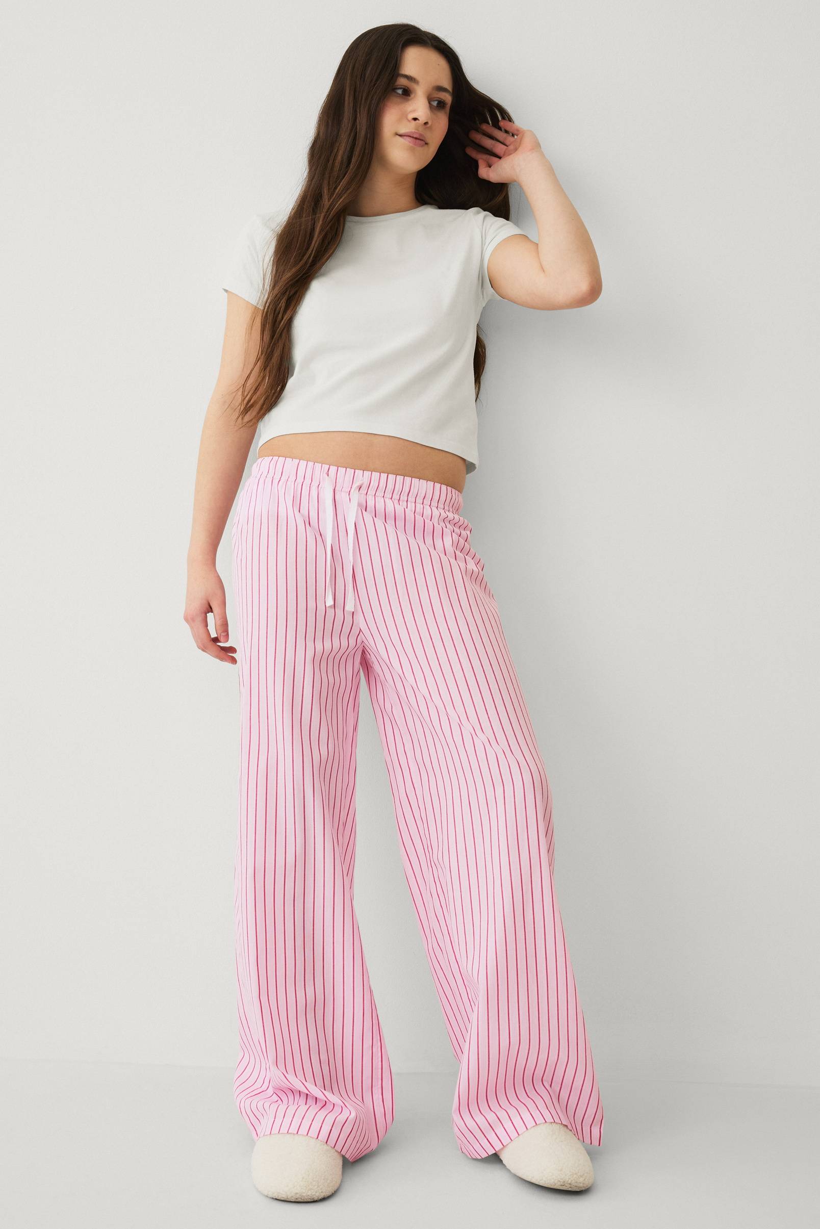 • Vida, randiga byxor i poplin