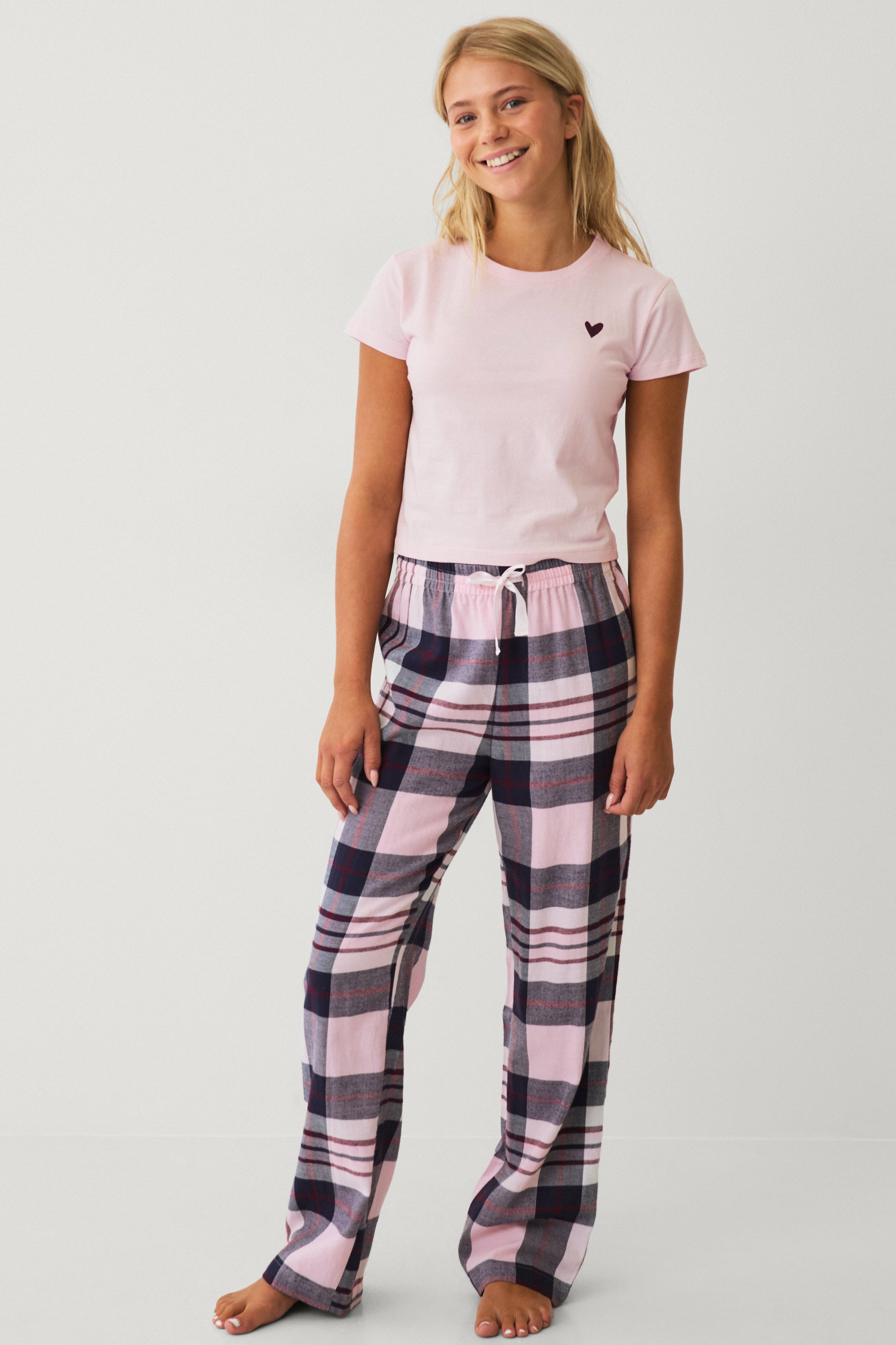 • T-shirt med rund, ribbad halsringning och glittrigt hjärta på bröstet