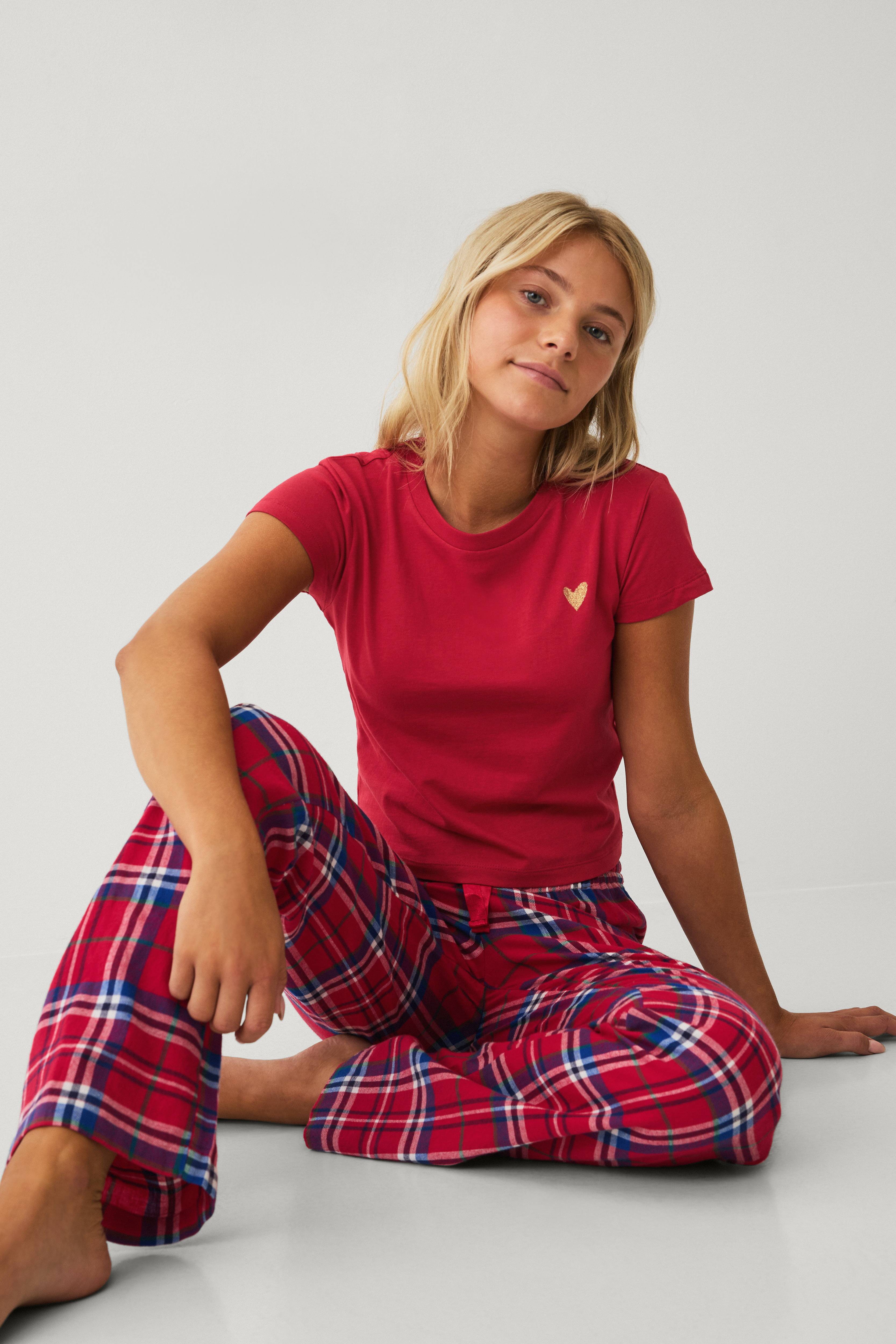 • T-shirt med rund, ribbad halsringning och glittrigt hjärta på bröstet