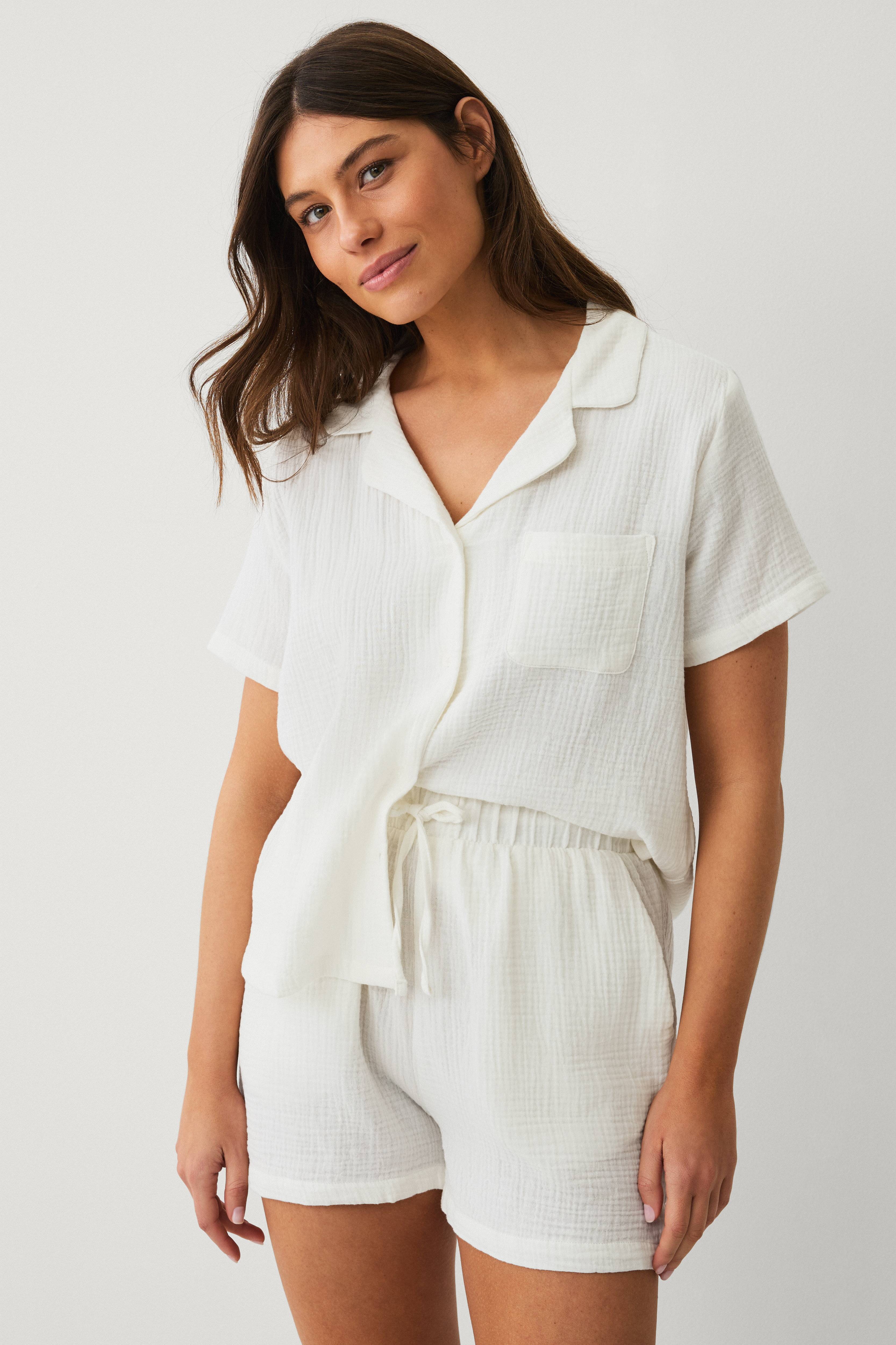 • Pyjamasshorts i strukturerad bomull• Elastisk midja med dragsko• Fickor i sidorna