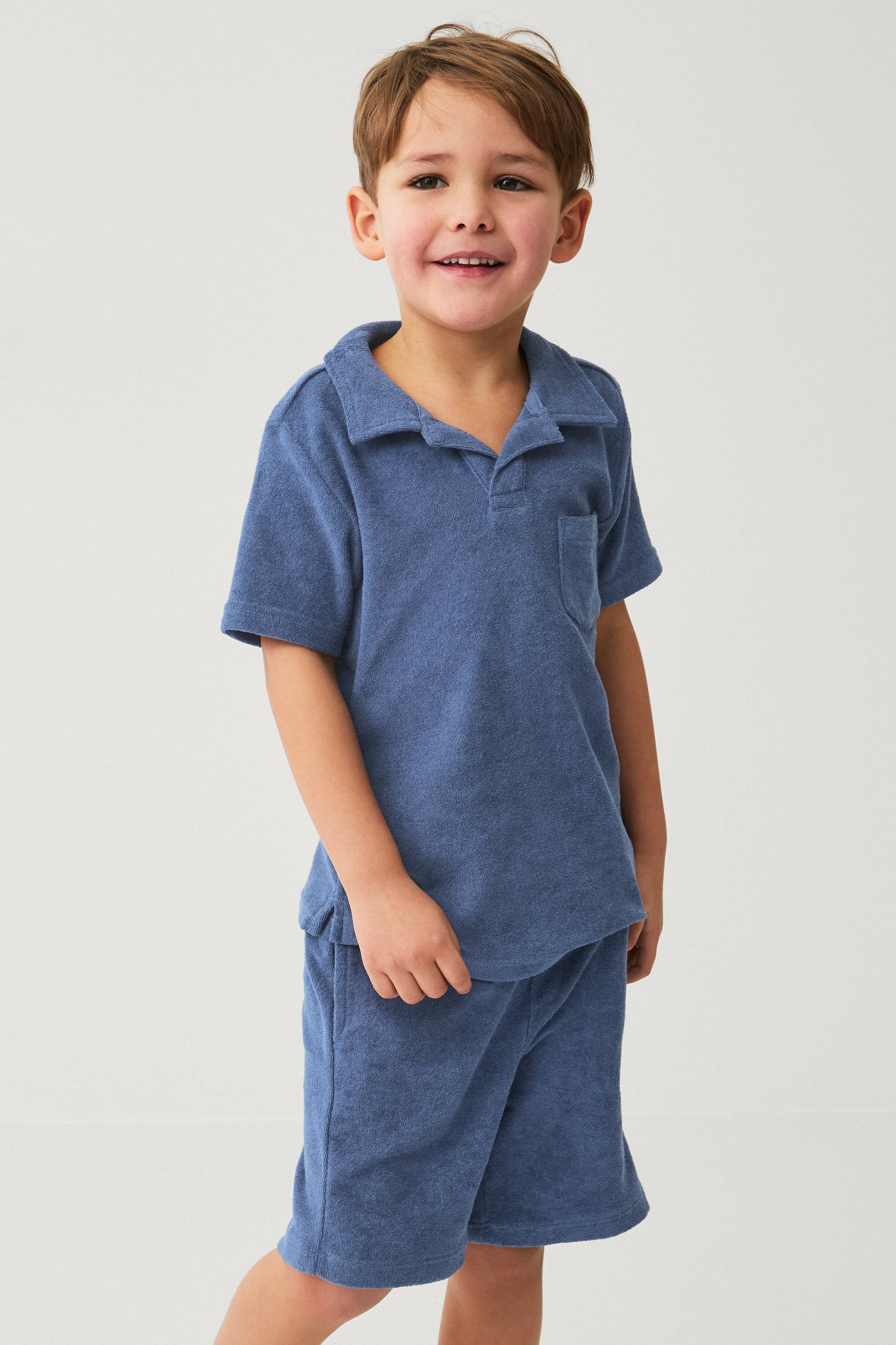 • 2-delat set i mjukt frottématerial• Skjorta med v-ringad hals och bröstficka• Sprund nedtill i sidorna• Shorts med elastisk midja och dragsko• Sidfickor