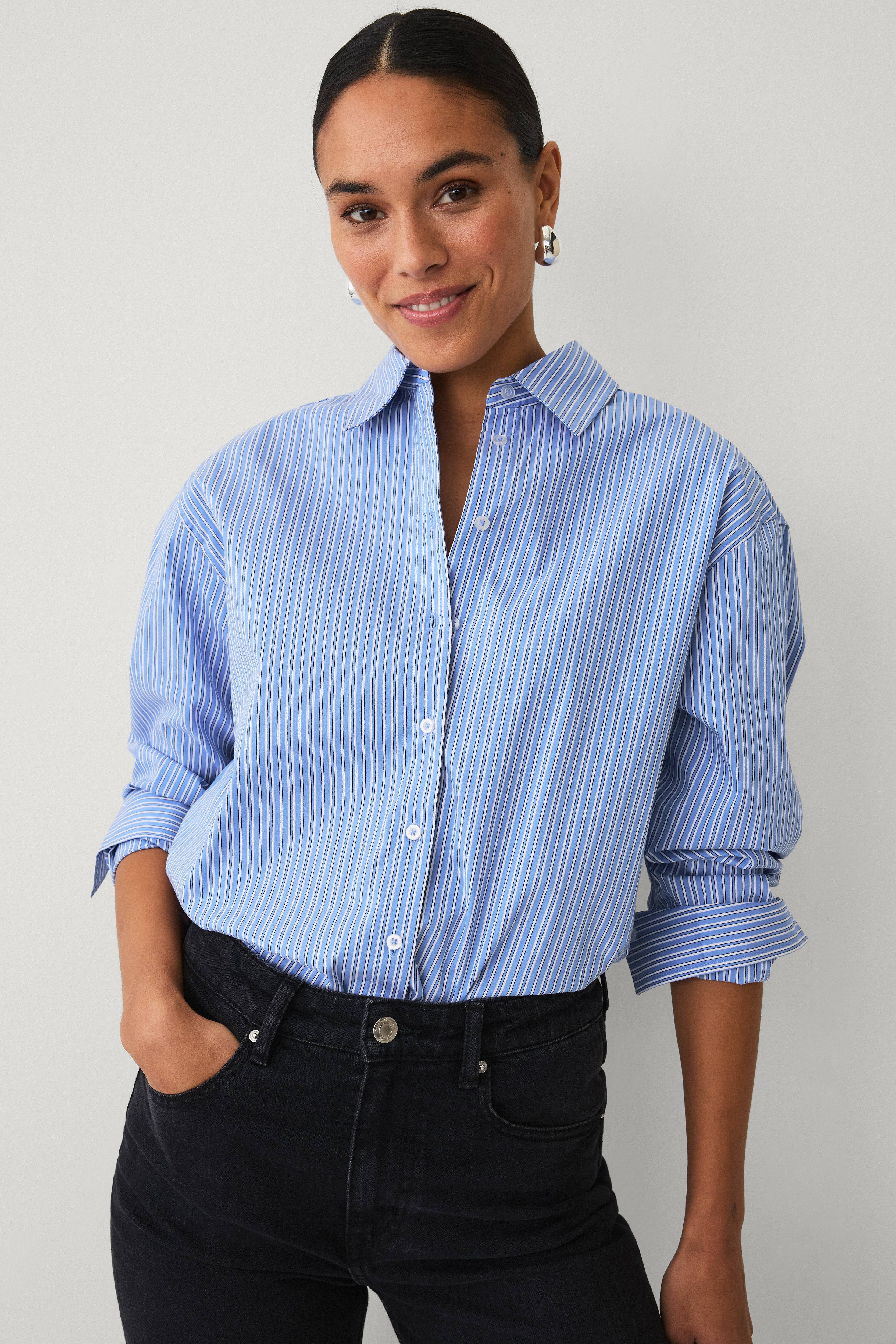 • Randig poplinskjorta i bomull