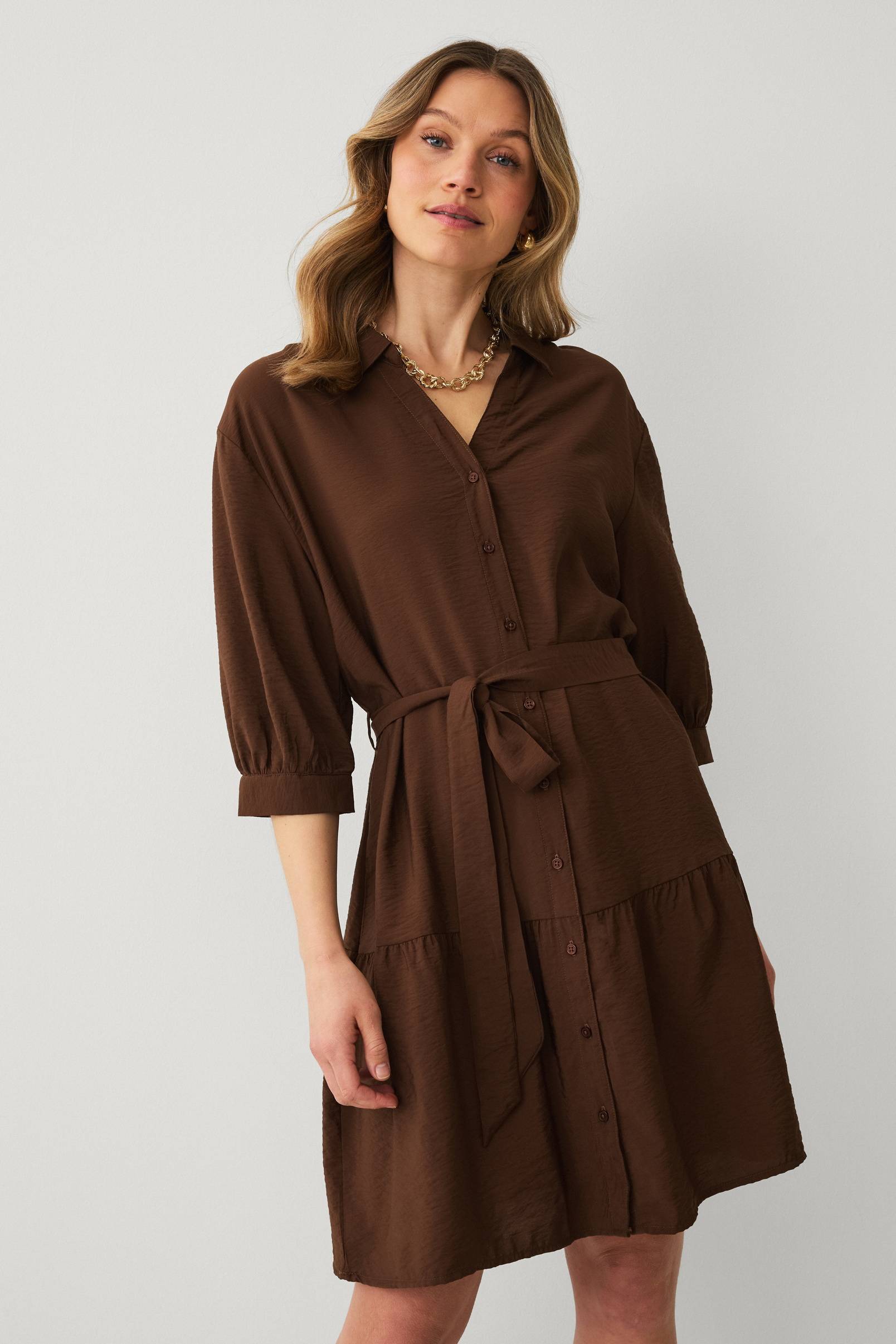 • Lätt glansig skjortklänning i viskosmix• V-ringning• Knappar fram• Korta ärmar med rynk nedtill• Manschett i ärmsluten• Avtagbart knytskärp i midjan• Bred volangkant nedtill• Längd: 98 cm i storlek S