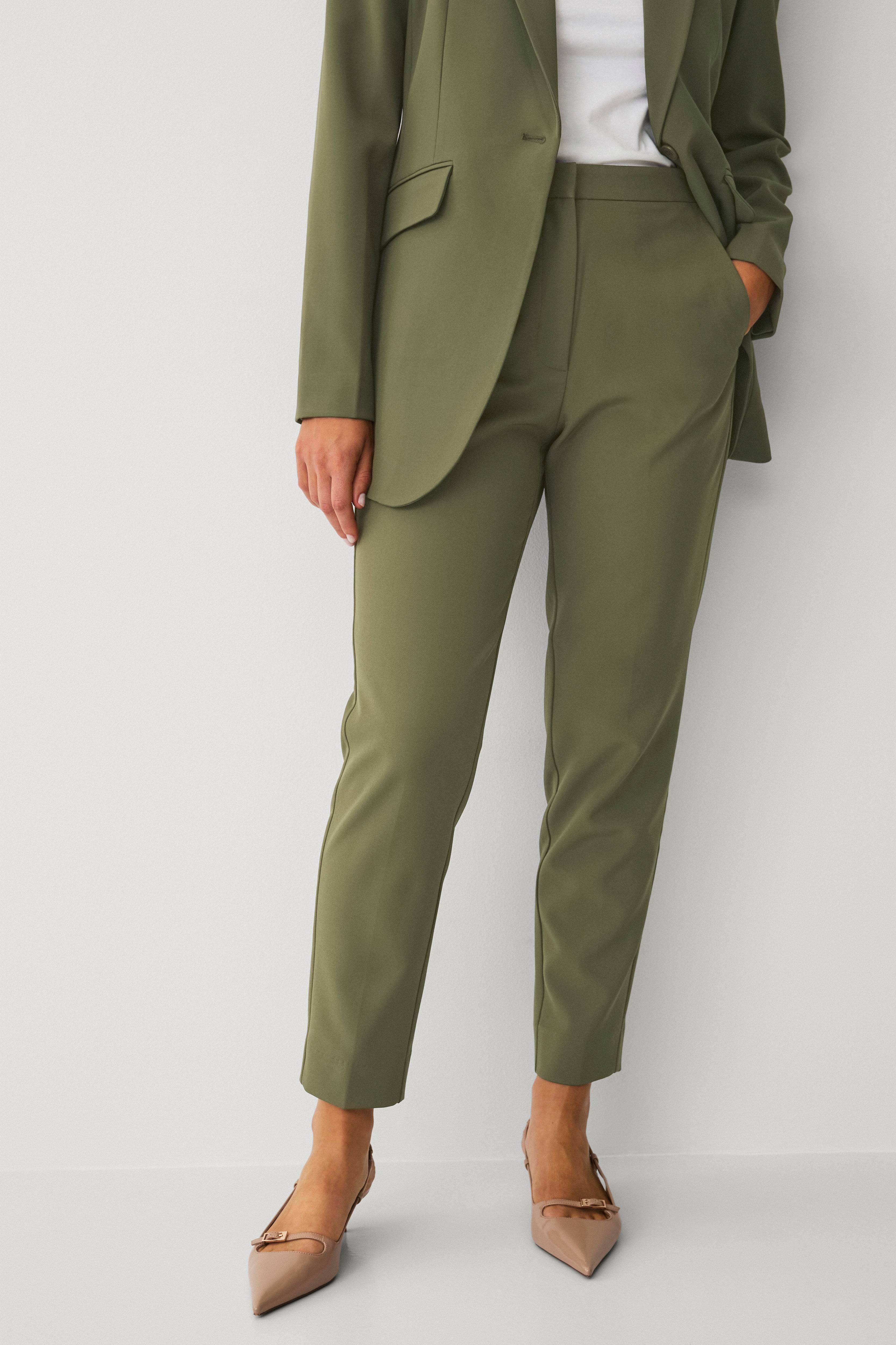 • Ankellånga slacks med hög midja• Smal passform• Smala ben• Dold hysk- och hakstängning• Sidfickor• Fuskfickor bak• Beninnerlängd: 68 cm i storlek 36