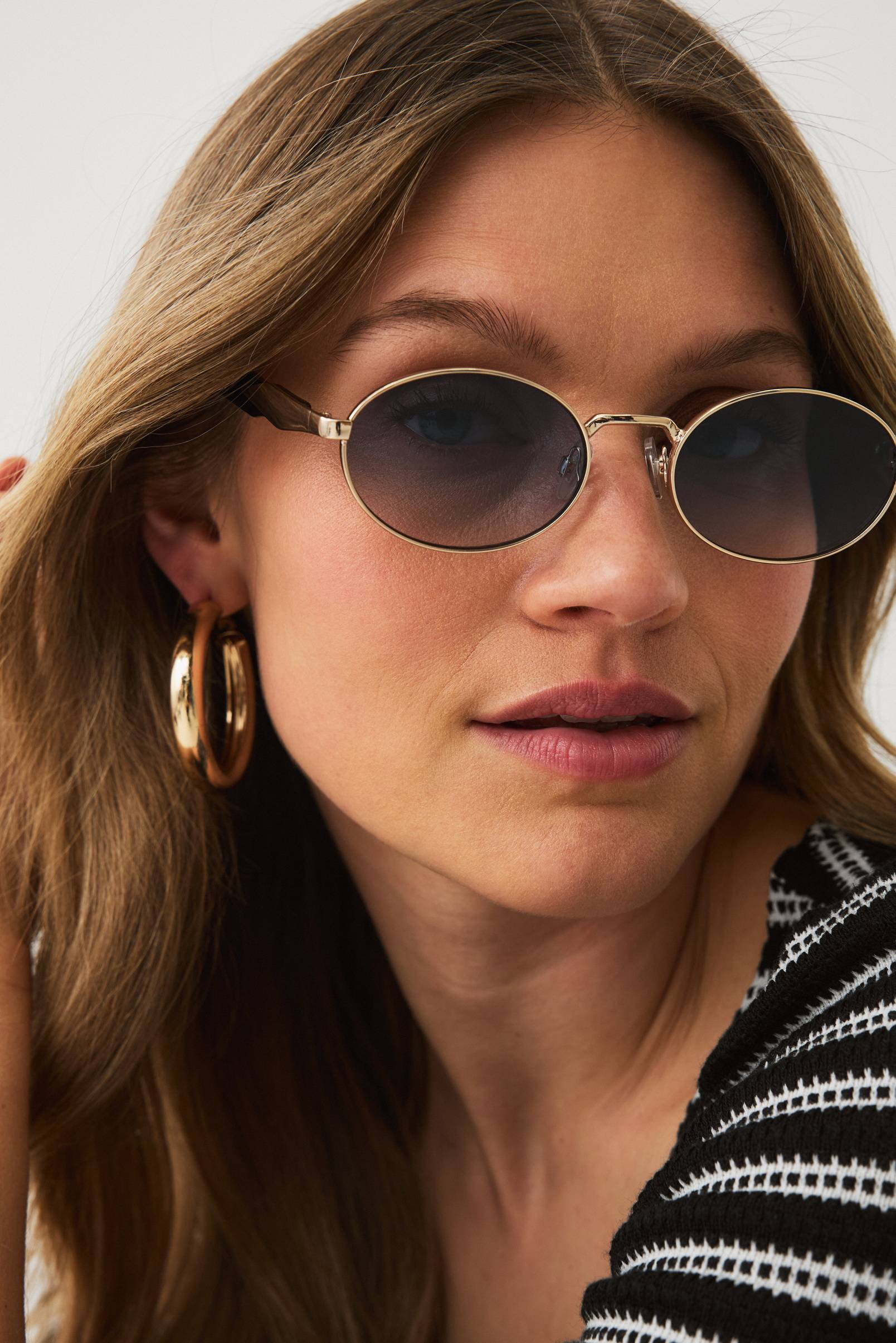 • Solglasögon med oval form• Bågar i metall och plast• Tonade plastglas• Bredd: 13 cm