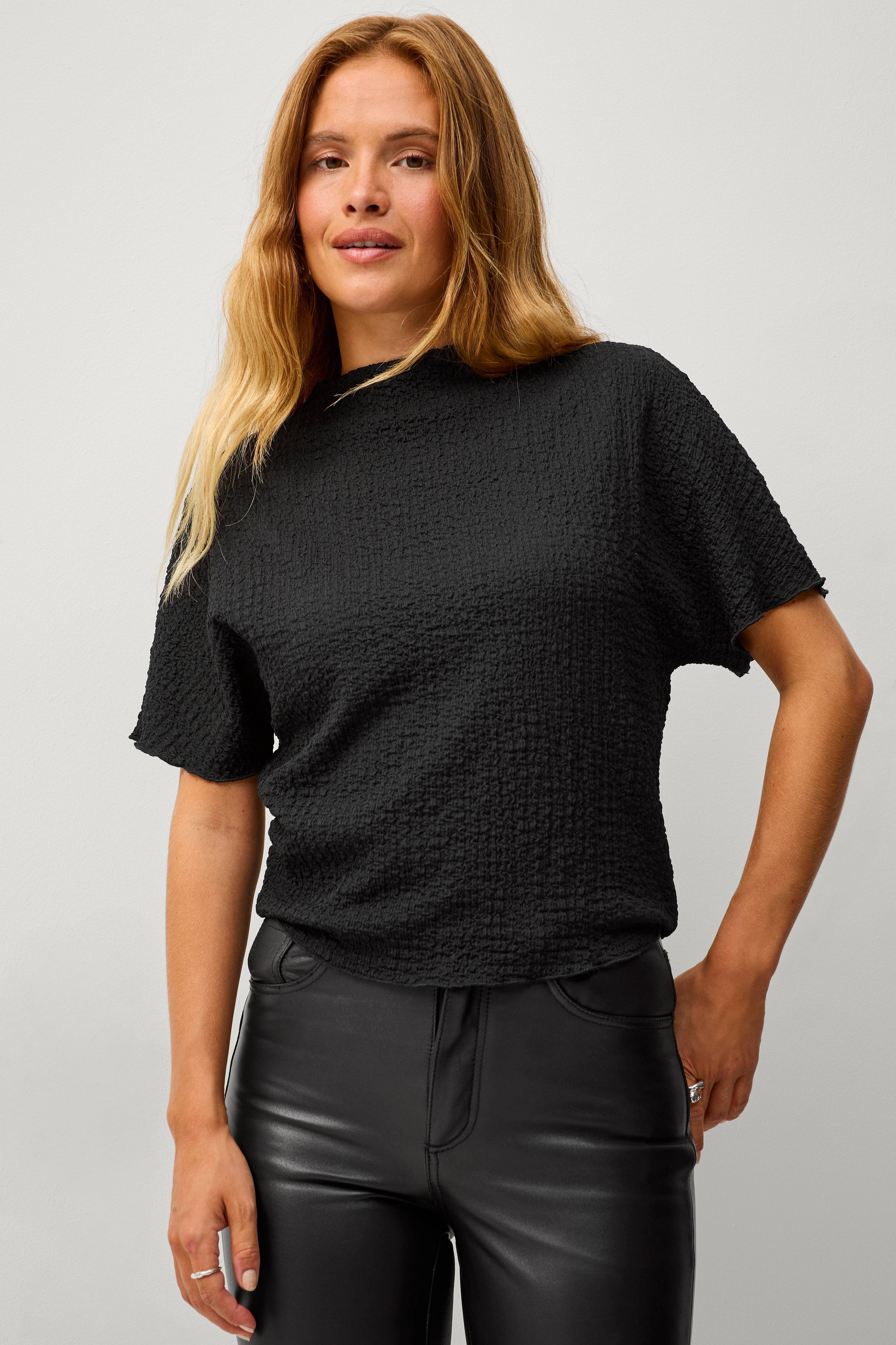 En favorit hemma hos mig. Har köpt fler färger. Den är stretchig och sydd i ett buckligt böljande tyg. Lagom längd perfekt för att ha innanför men även utanpå. Den grå färgen känns dock me…