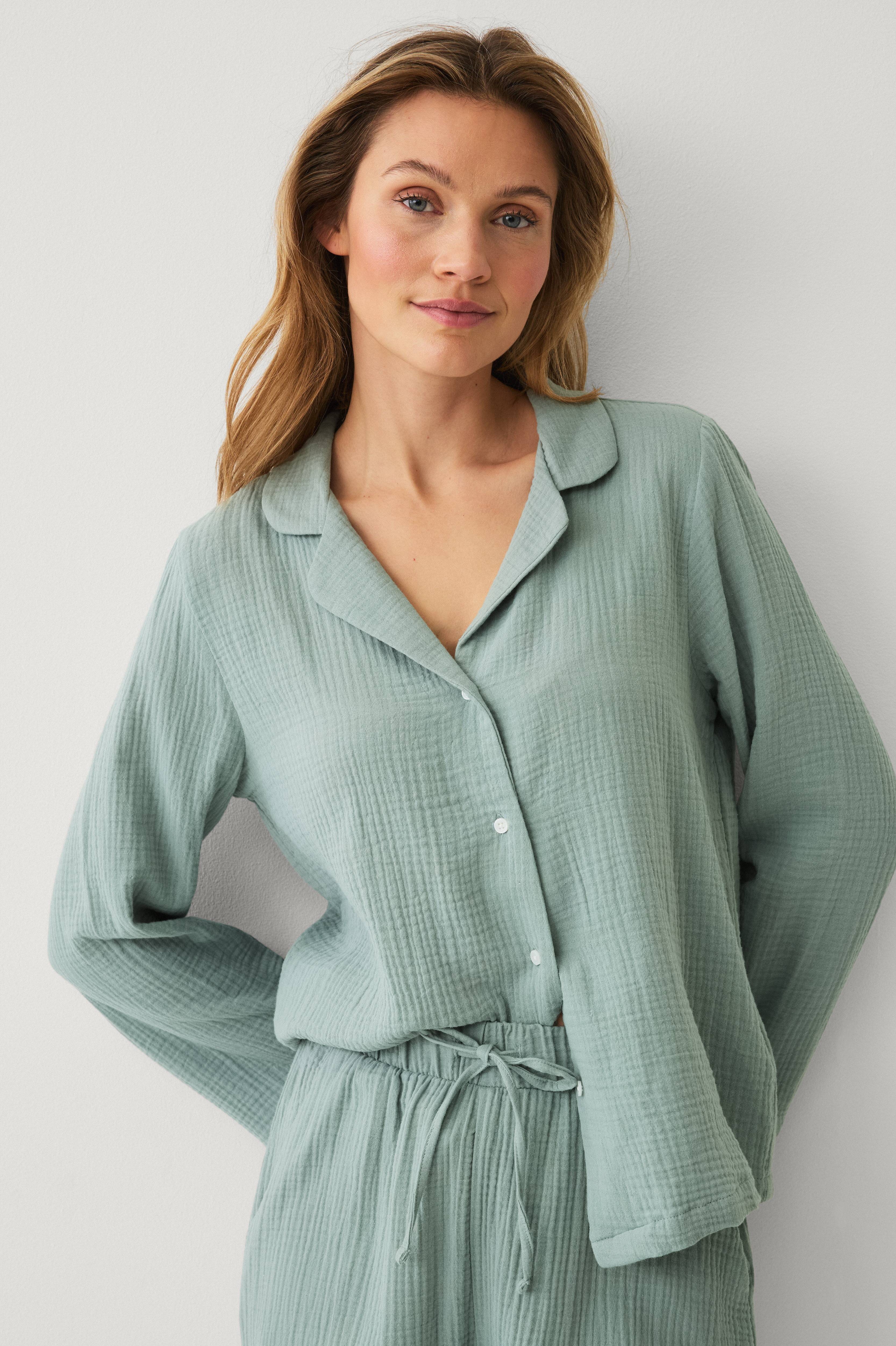 • Strukturmönstrad modell• Rundad krage med slag• Knappar fram