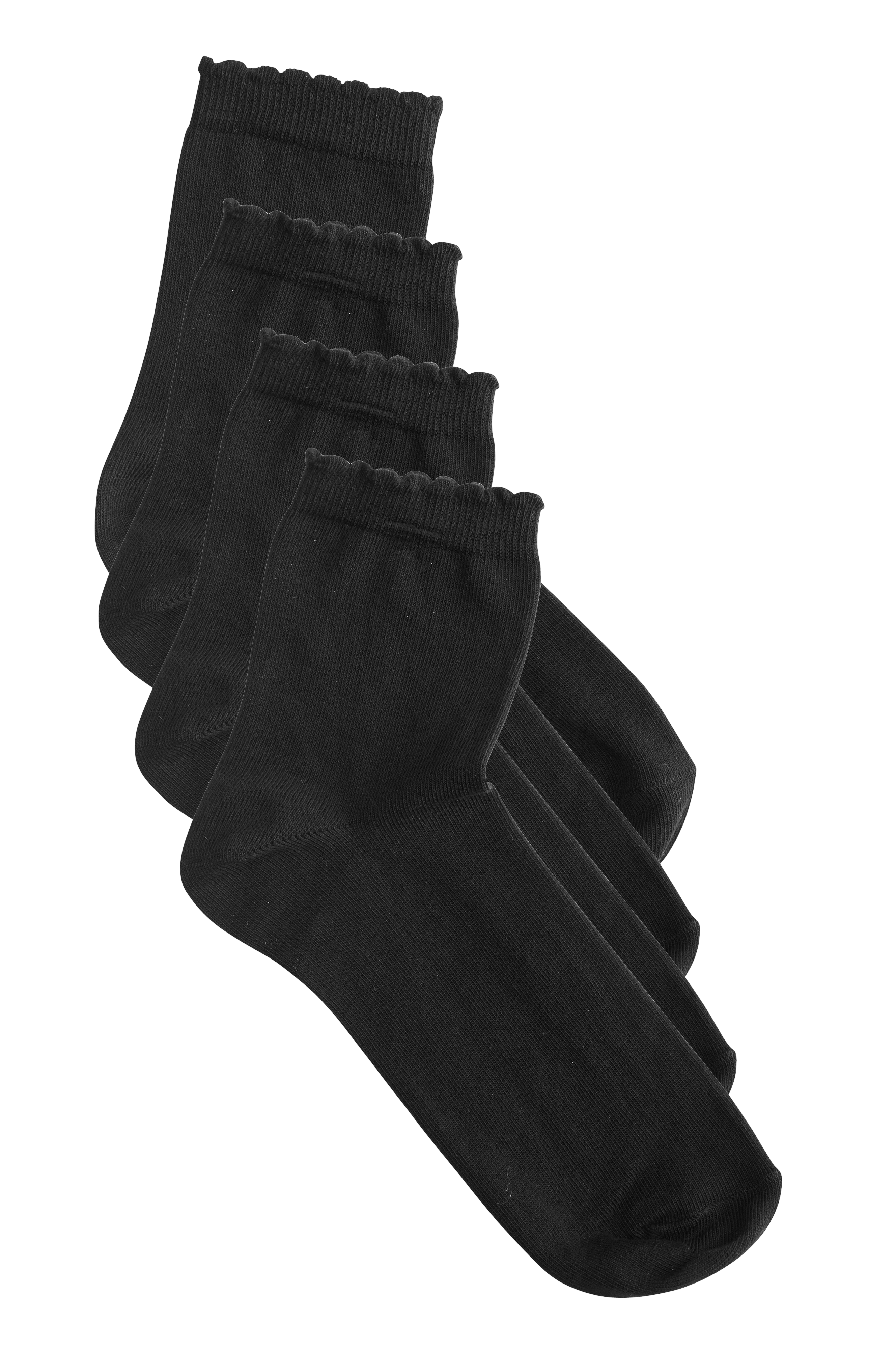 Strumpor i stretchkvalitet med ekologisk bomull. Praktisk 4-pack med liten volangkant upptill.