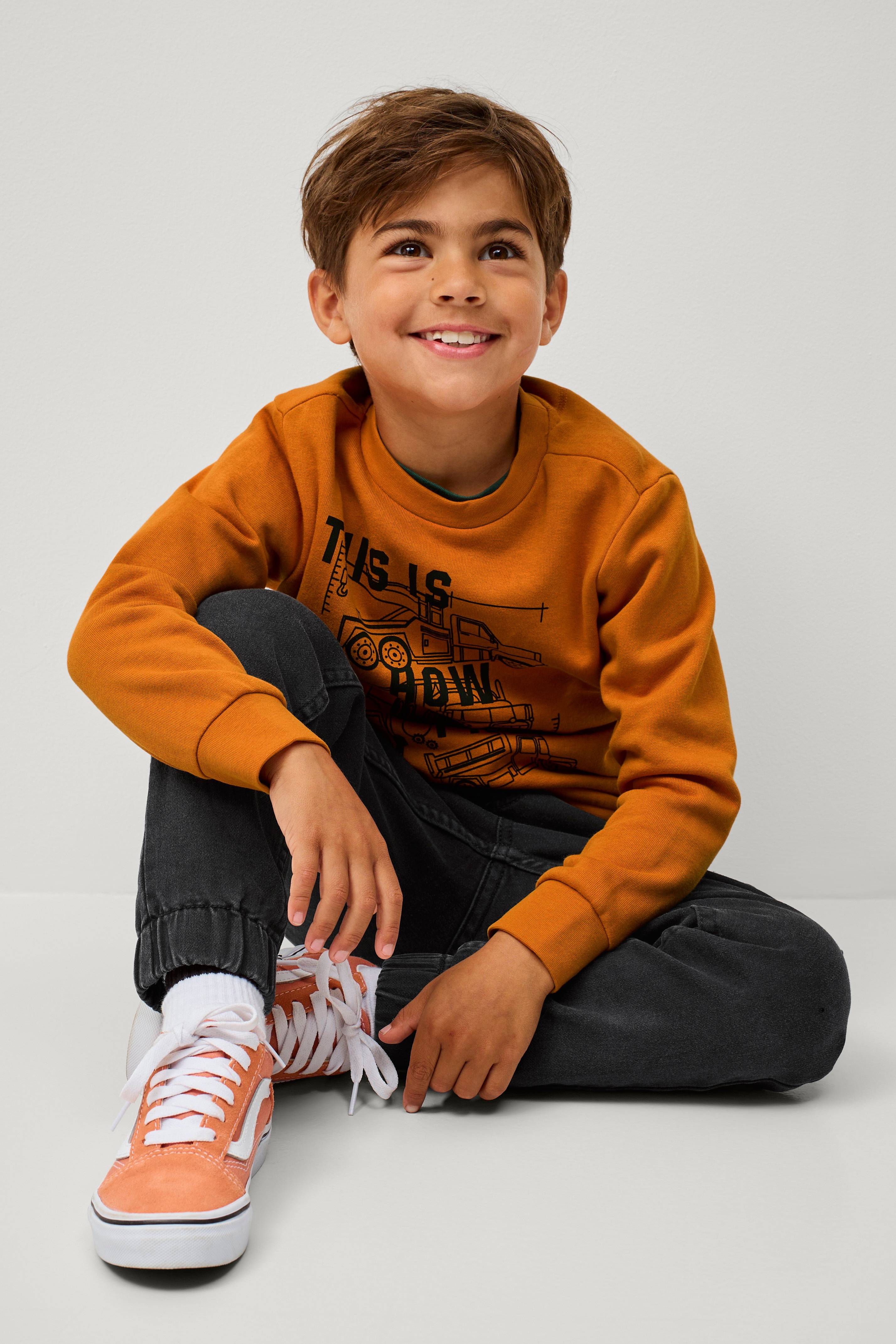 • Sweatshirt i bomull• Mjuk, borstad insida• Rund halsringning• Tryck fram• Ribbmuddar i ärmsluten och nedtill