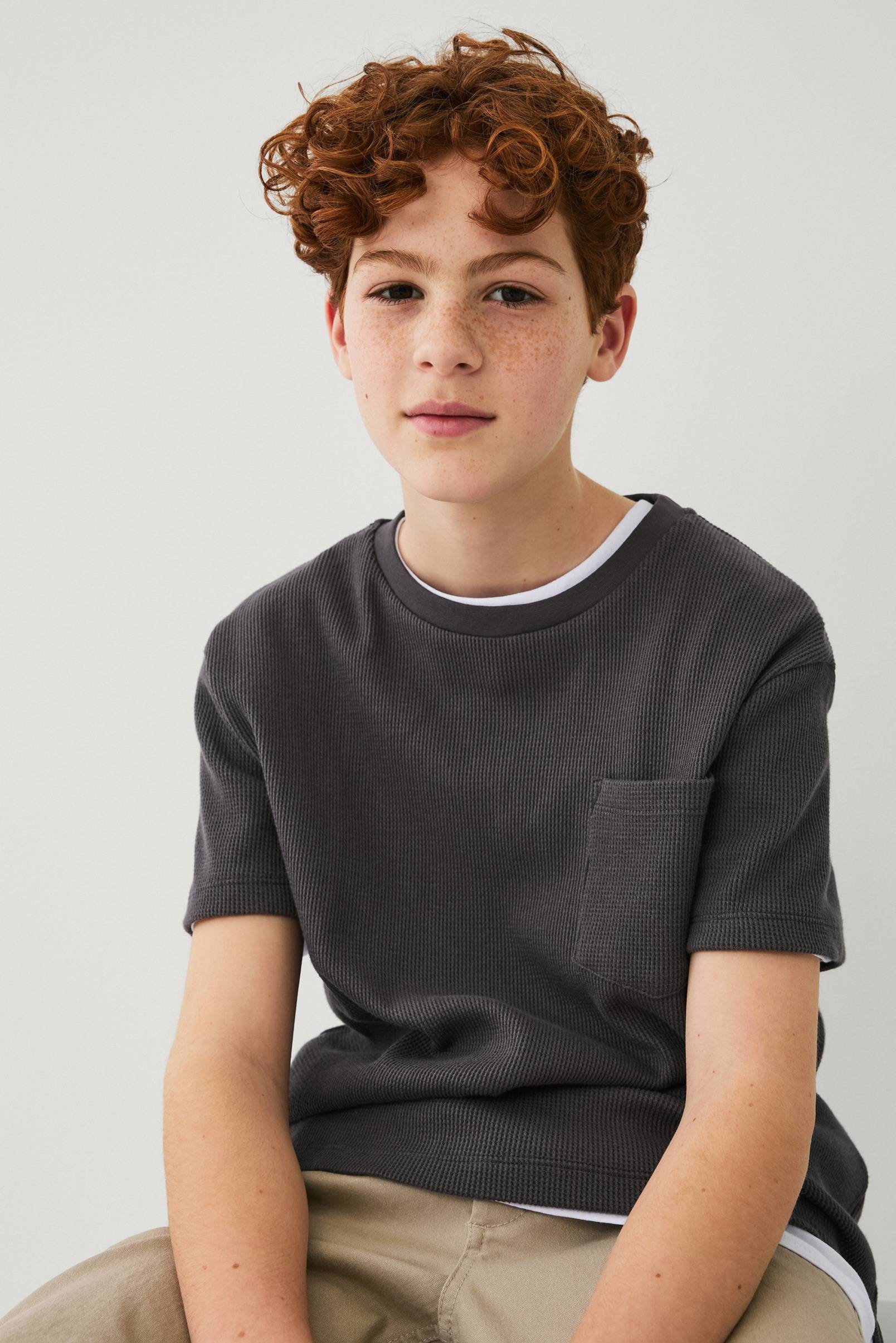 • T-shirt i bomull med våffelstruktur• Rund halsringning• Bröstficka