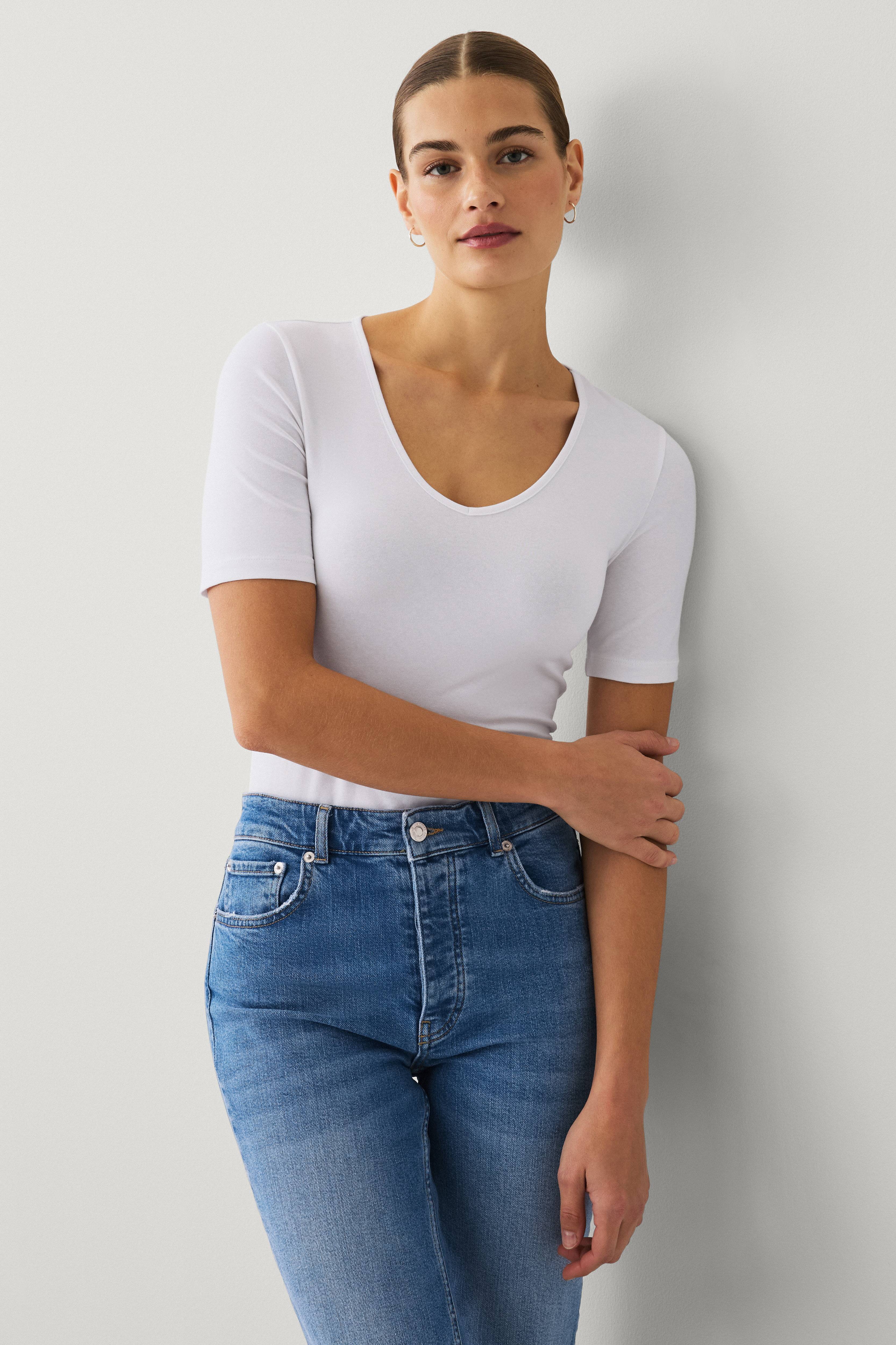 • Kortärmad, stretchig t-shirt i viskostrikå