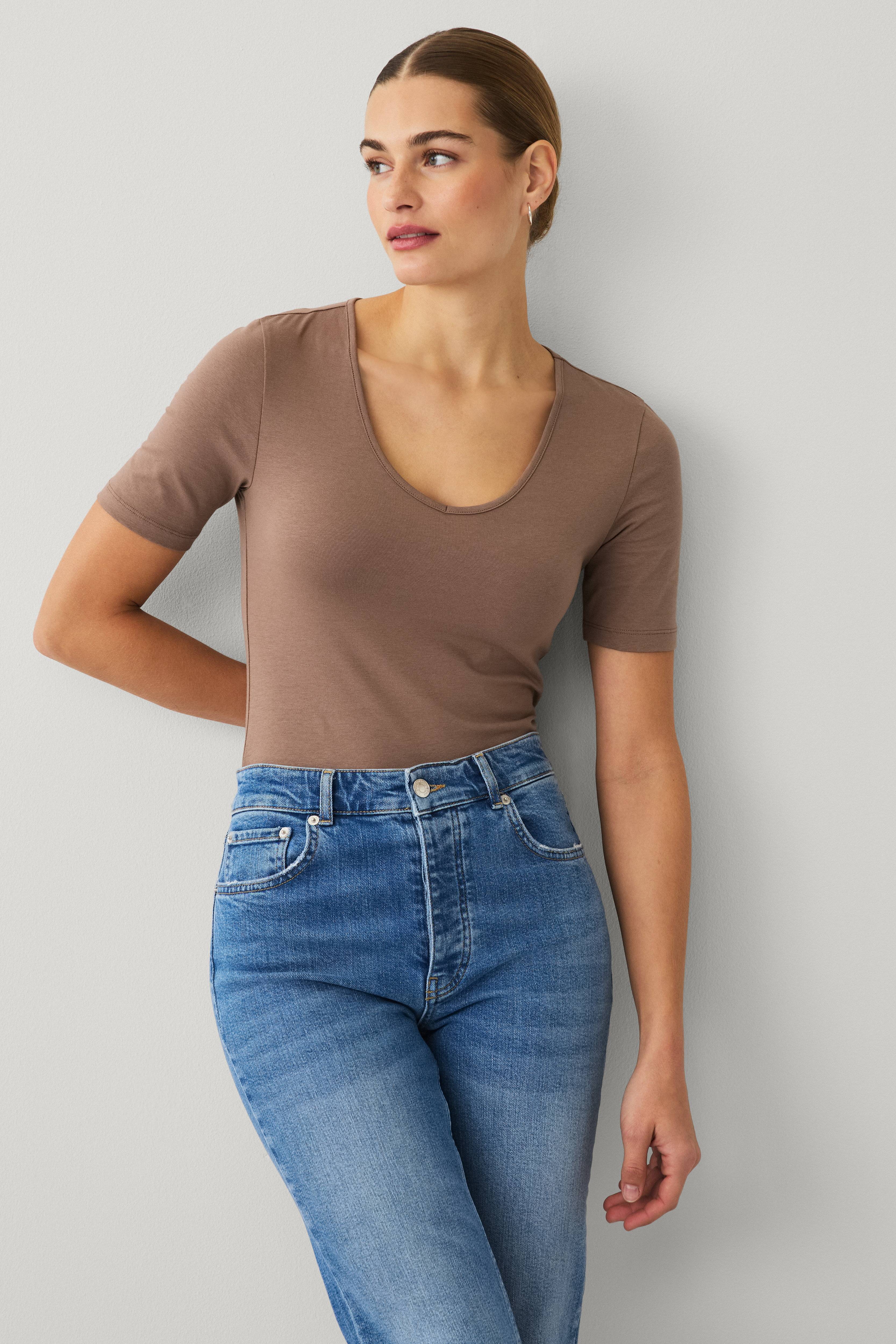 • Kortärmad, stretchig t-shirt i viskostrikå