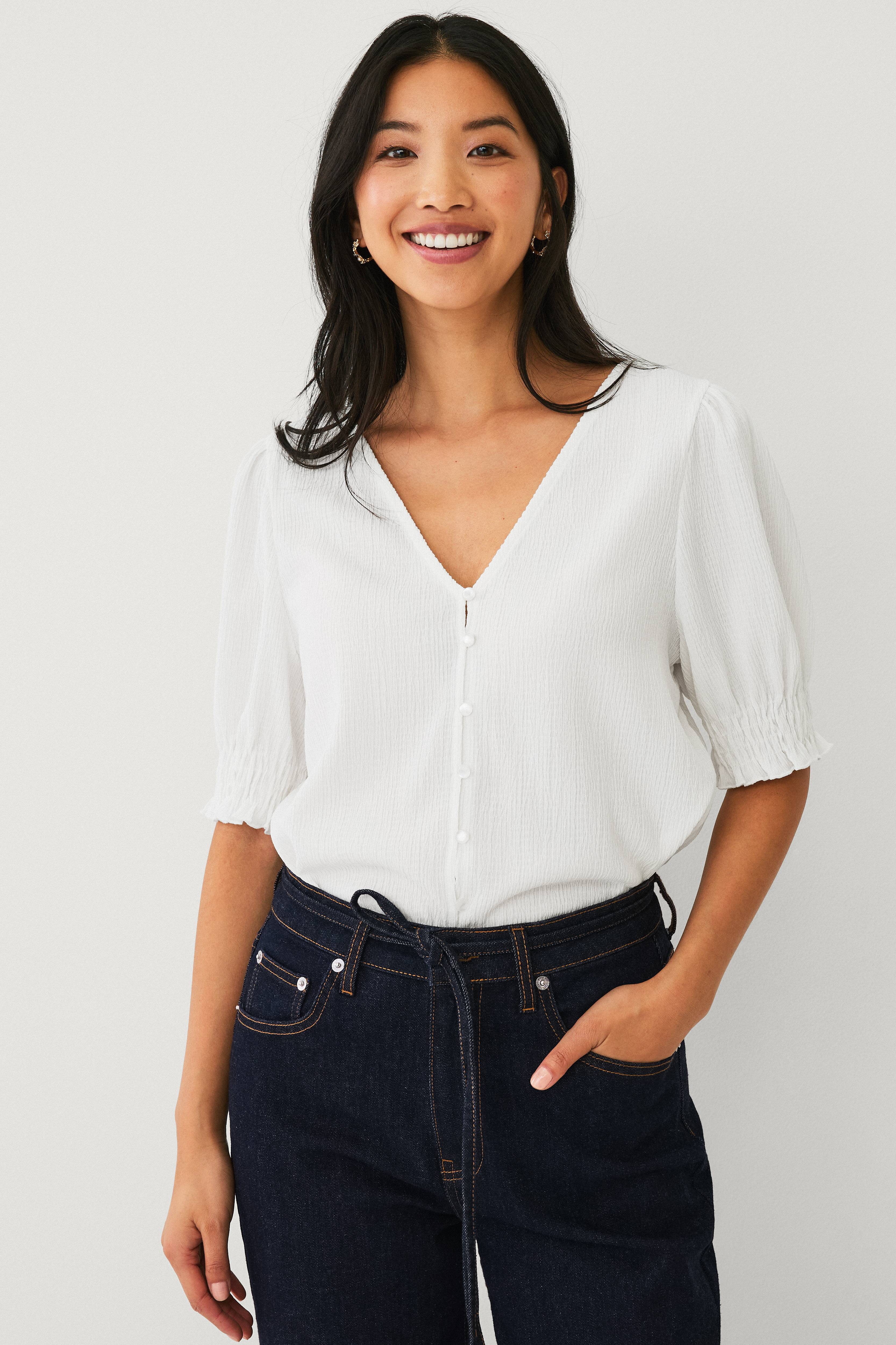 • Korta ärmar med smock i ärmsluten