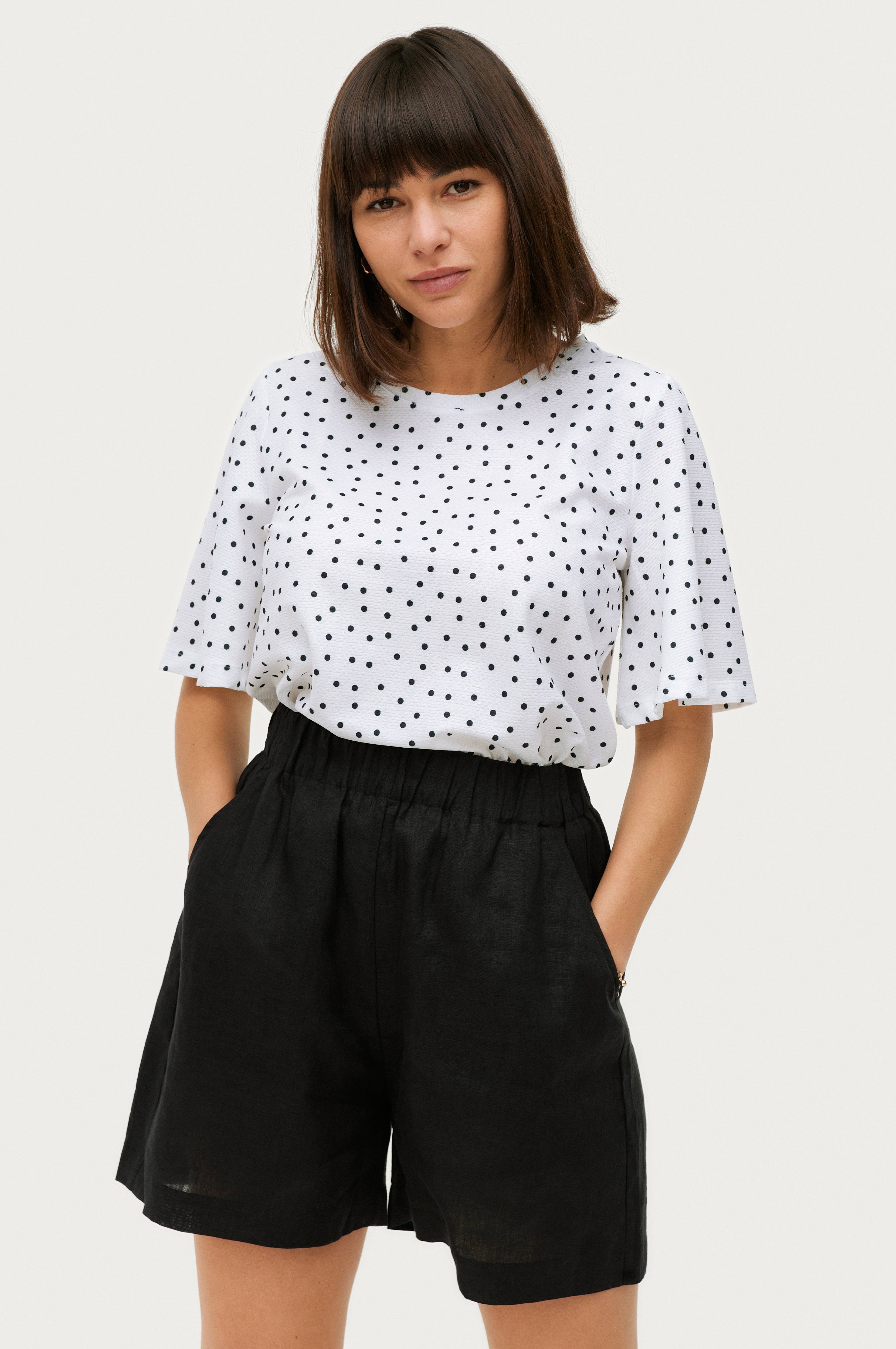 • Rund hals • Korta fjärilsärmar • Stretchkvalitet med struktur • Lös passform • Längd: 61 cm i storlek 34/36 • Produkten innehåller återvunnet material som har tagits tillvara för att minska mängden avfall, samtidigt som nya resurser inte har förbrukats.