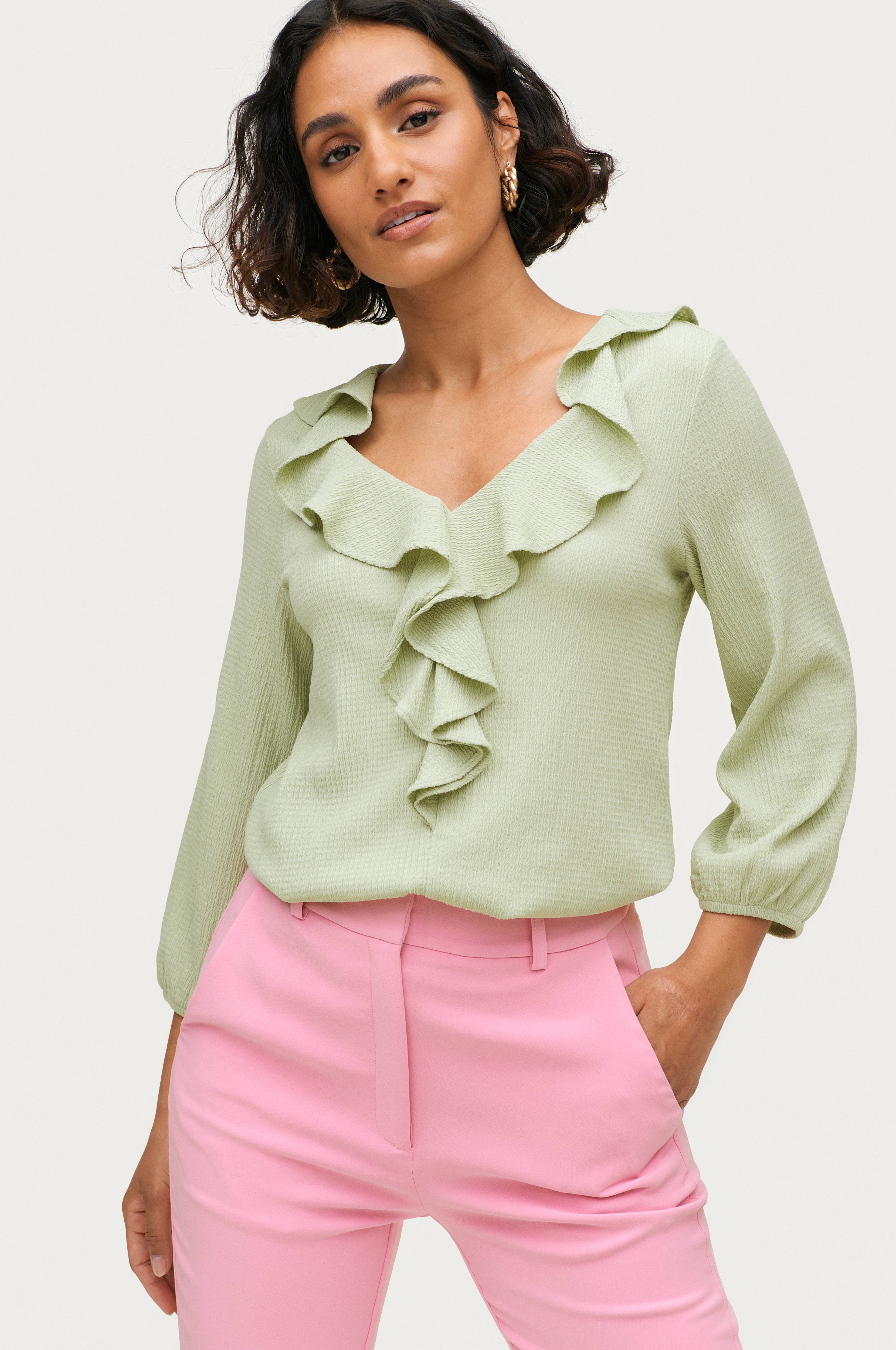 • V-ringad hals med bred volang
