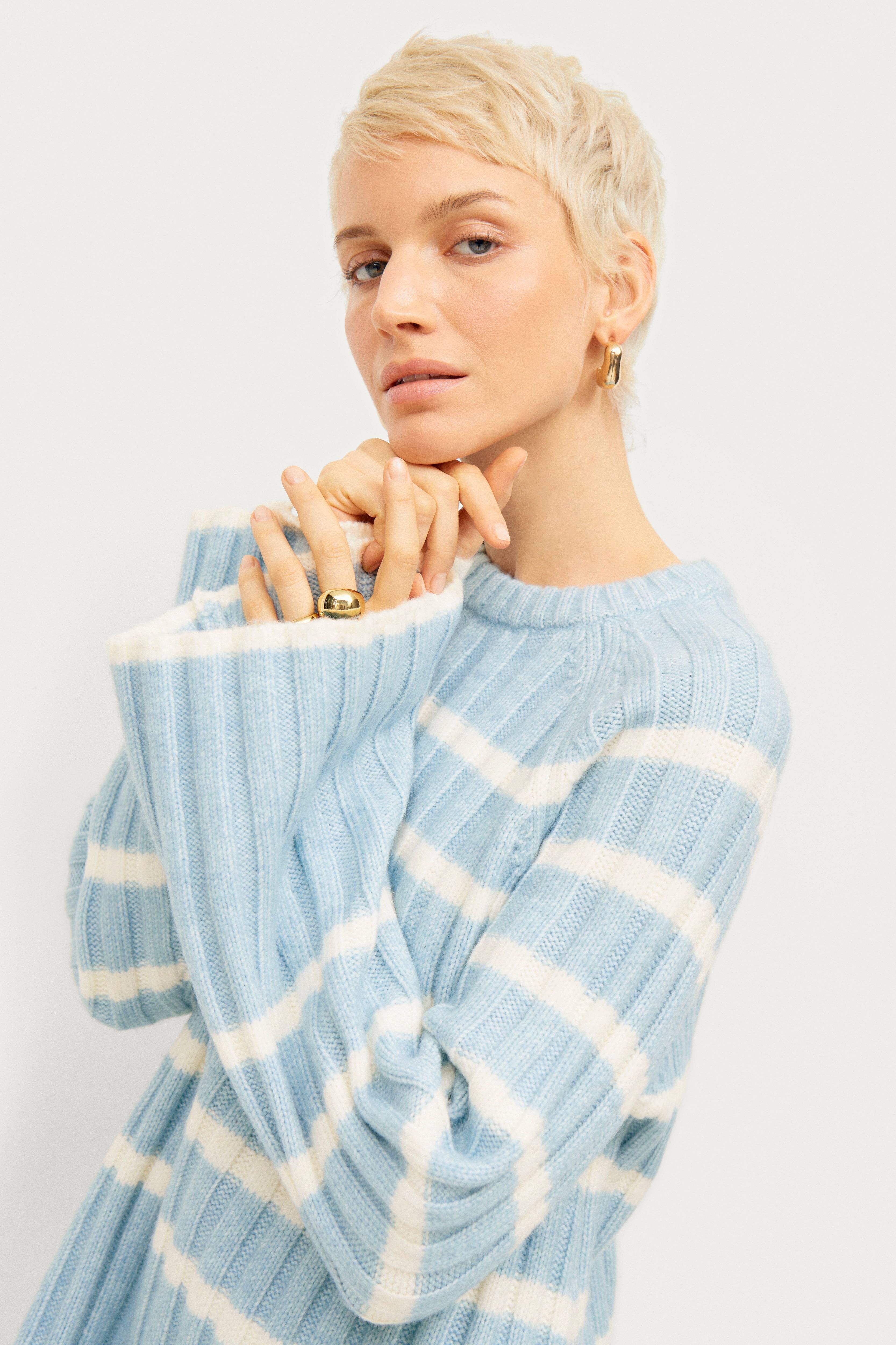 Jätte fin och mjuk tröja men ärmarna är irriterande långa och jag har ändå normallånga armar för att vara en person på 173cm. Ärmarna täcker hela handen och lite till.