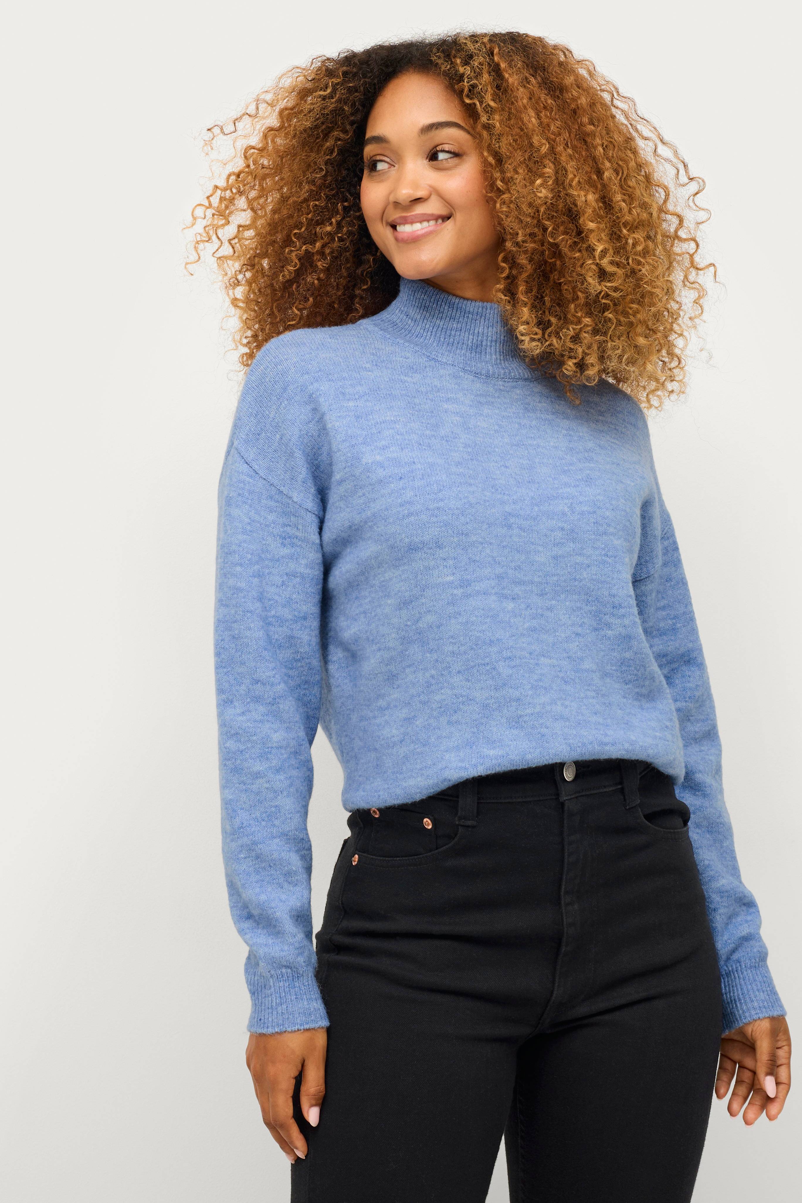 • Stickad tröja• Hög, ribbad krage• Nerhasade axlar• Ribbmudd i ärmsluten och nedtill• Längd: 64 cm i storlek 34/36