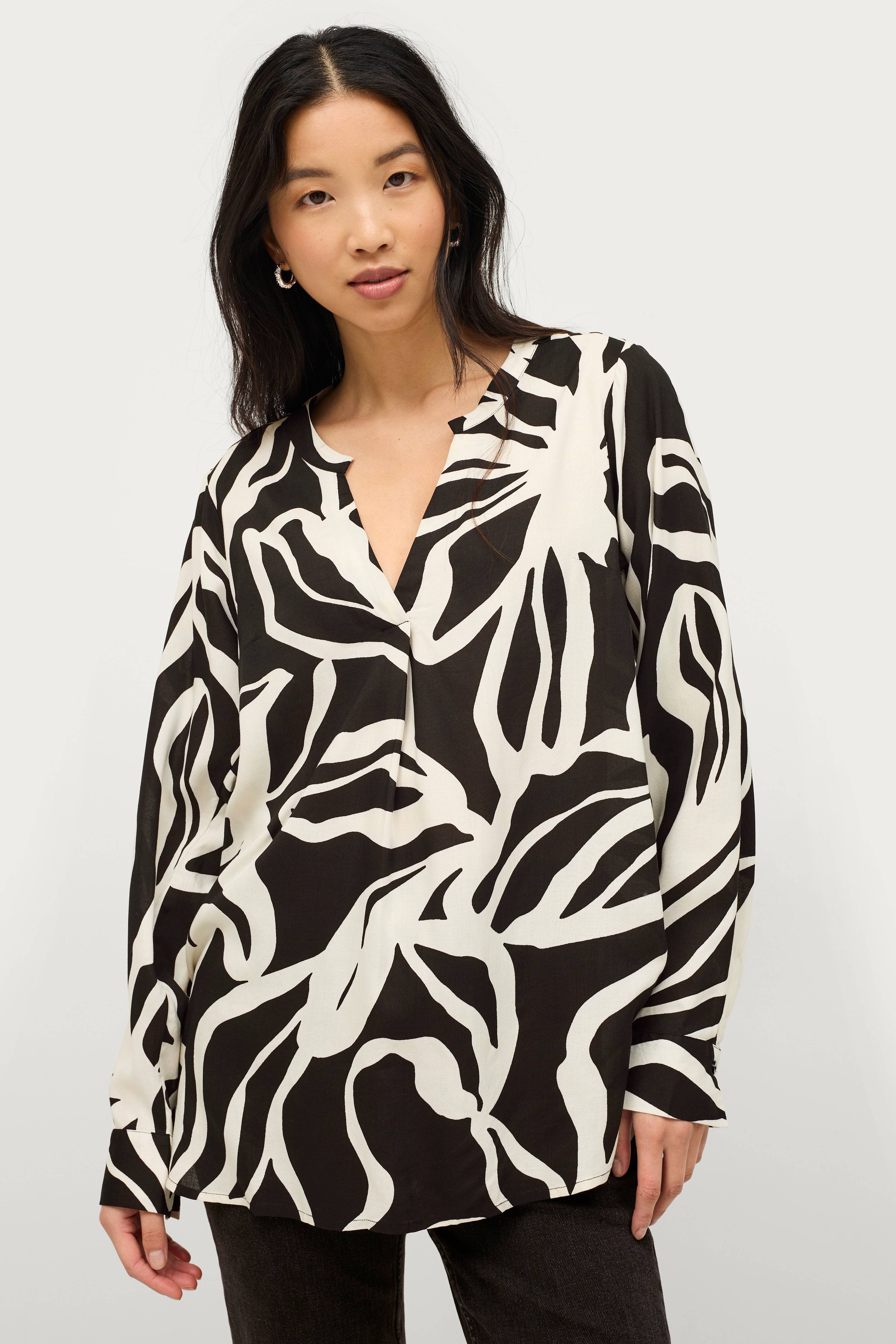• Mönstrad tunika i viskos• V-ringning• Långa ärmar med manschett• Längd: 72 cm i storlek 34/36