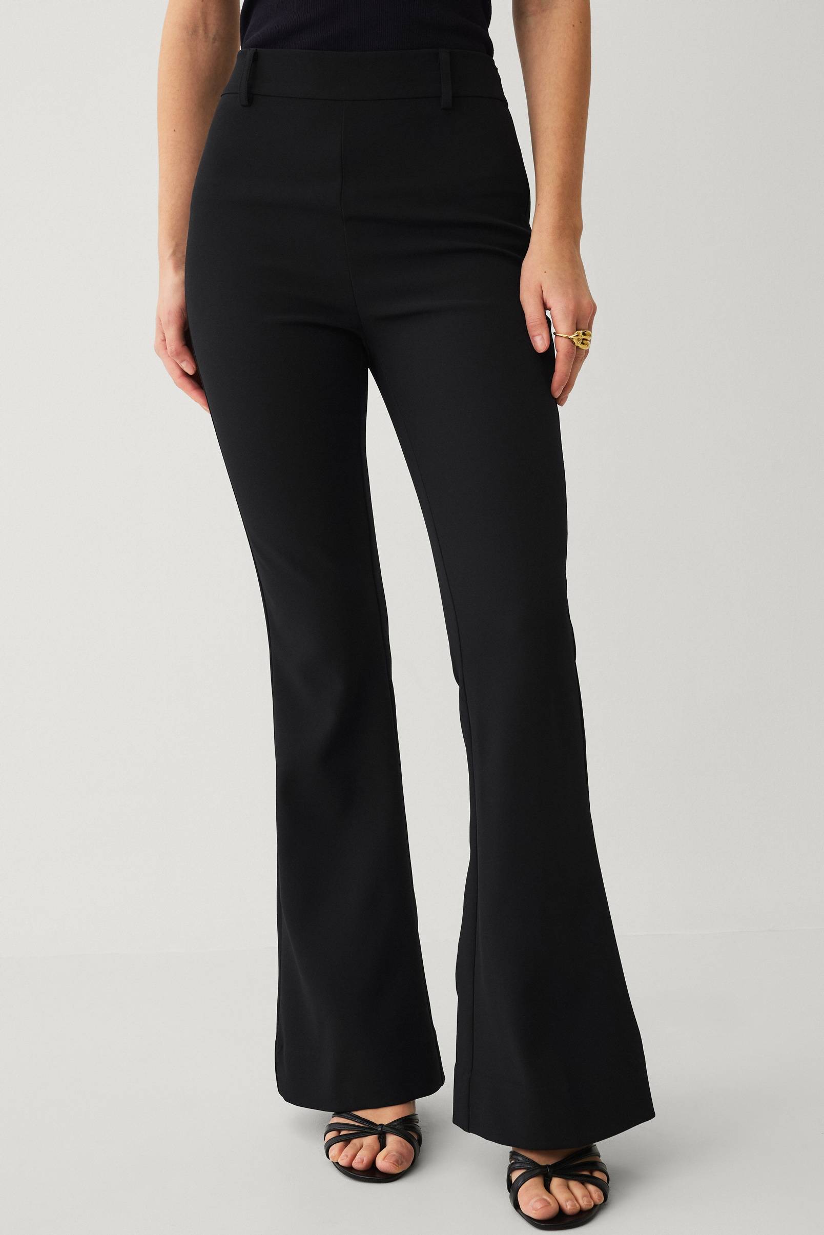• Stretchiga kostymbyxor• Bootcutmodell• Hög midja• Bälteshällor• Dragkedja i ena sidan• Fuskfickor bak