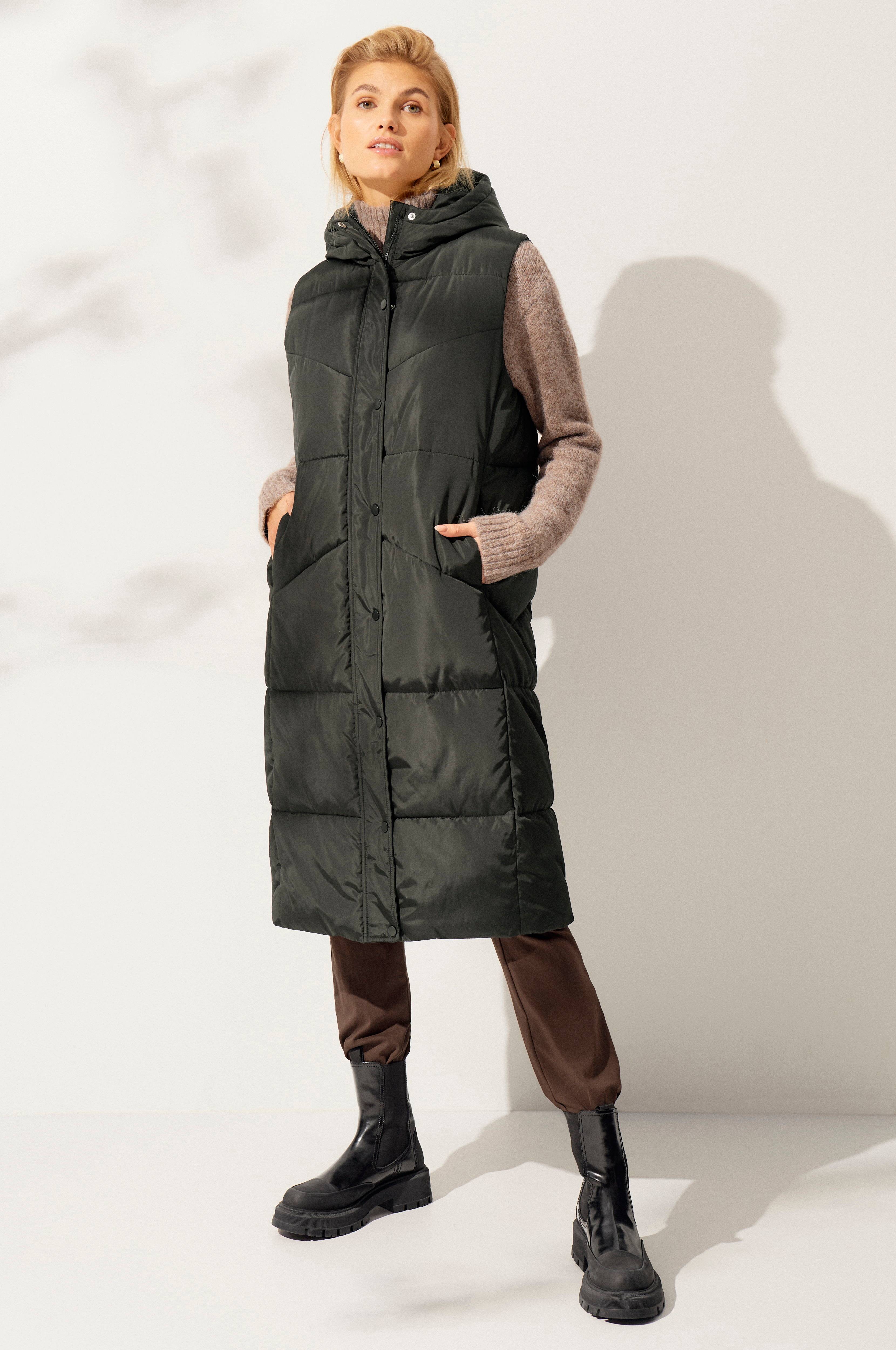 • Lång väst med varm vaddering • Tvåvägsdragkedja med vindslå och tryckknappar fram • Fast huva • Fleecefodrade framfickor • Längd: 109 cm i storlek 34/36 • Produkten innehåller återvunnet material som har tagits tillvara för att minska mängden avfall, samtidigt som nya resurser inte har förbrukats. • Produkten är impregnerad med Rudolf Bionic Finish Eco, en vattenavvisande behandling som är fri från tillsatta perfluorerade ämnen (PFC). Du kan behöva återaktivera impregneringen om vattnet på ytan slutar pärla sig. Detta gör du genom att tillsätta värme på låg temperatur genom t.ex. strykning eller torktumling. Vid behov kan även impregneringspreparat behövas.